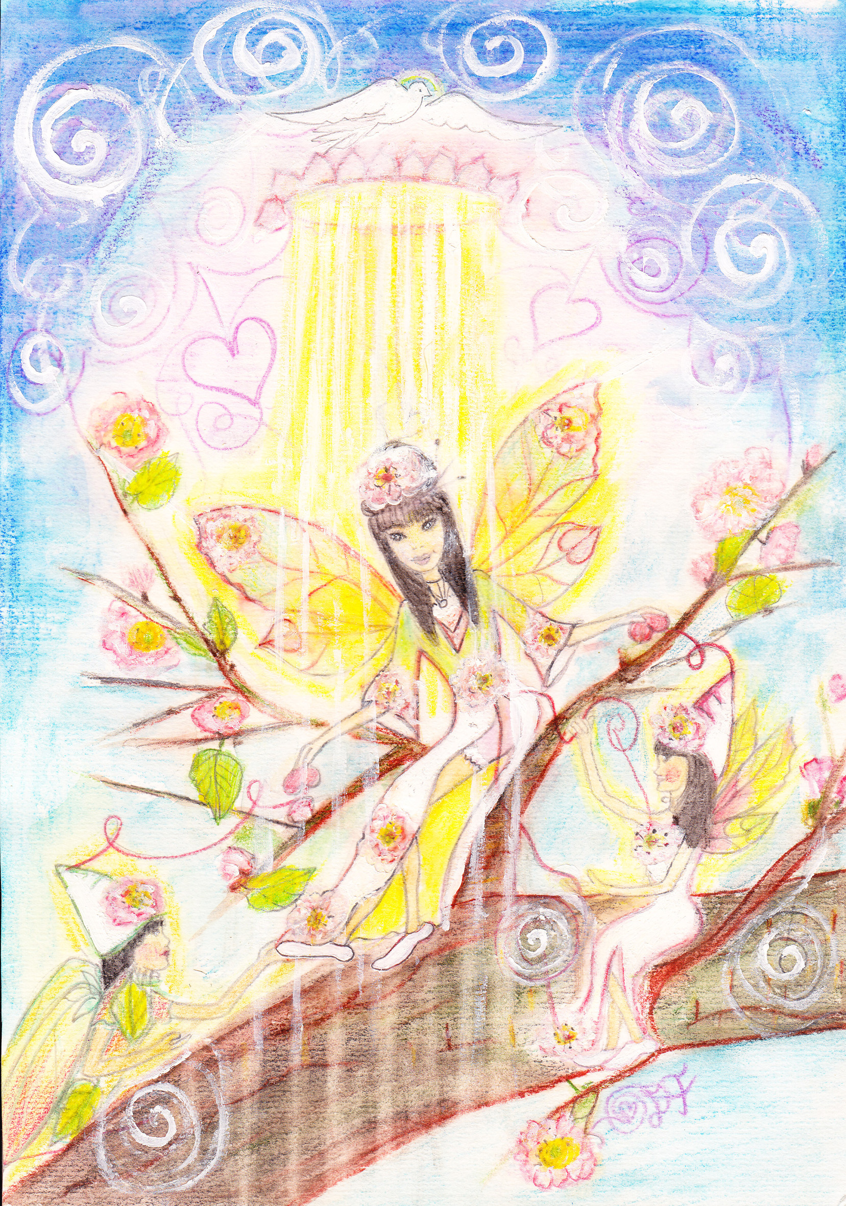 4. Víla Sakurka se připravuje na rozkvět stromu Sakura (okrasná třešeň). Pomocníčci (tkalci) ji tkají nové šaty z jarních paprsků světla. Zajímavé na tom je, že i víly mají svůj původ stejný jako strom nebo květ. Tato víla kraluje v parku na Vítkově v Praze.