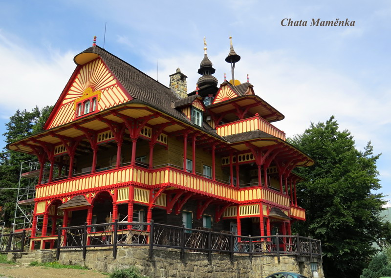 Pustevny. Většina návštěvníků sem dnes už přijíždí autem anebo se vyveze lanovkou, ale jít nahoru pěšky dává turistovi příležitost, alespoň na chvíli se vyhnout velkému množství lidí, kteří se po zdejším hřebeni procházejí. My jsme tu byli uprostřed týdne, takže množství návštěvníků bylo ještě snesitelné, ale jinak tu asi musí být hlava na hlavě, což je pro klasické milovníky horské turistiky už tak trochu na obtíž. Je ale pravda, že existují i jiné trasy, kde se může člověk kochat krásou Beskyd takřka nerušen, nebo potká jen sobě podobné milovníky ticha a přírodní krásy.