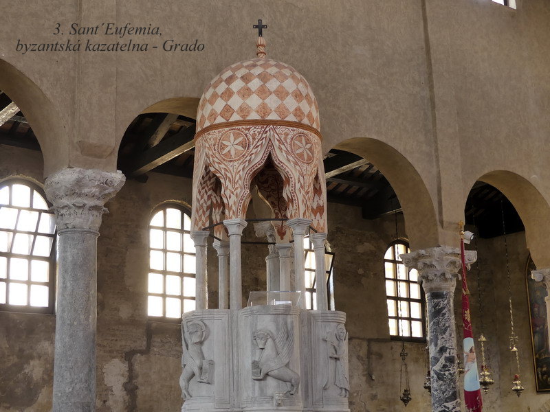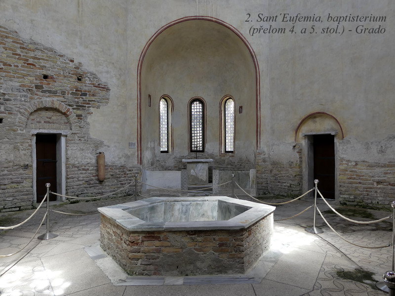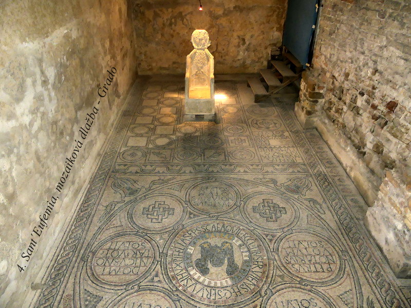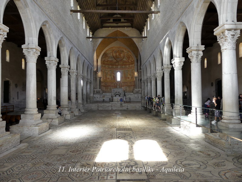 Na naši cestu jsme vyrazili ve středu brzo ráno. Kromě malého zdržení na okruhu kolem Vídně jsme neměli žádný velký časový skluz, a tak jsme už po asi 7 hodinách přijížděli k hrázi spojující starobylou Aquileu s ostrovem Grado. Toto místo bylo svého času významným římským městem a později zde sídlil i aquilejský patriarcha. Město Grado pak plnilo tuto funkci v době ohrožení Aquiley za nájezdů Hunů, a tak i v tomto malém městečku může návštěvník spatřit jednu z nejstarších bazilik v zemi. V Aquileie a stejně tak i v Gradu jsou také nejzachovalejší mozaikové podlahy v celé Evropě vůbec, stejně jako pozůstatky mnoha fragmentů z dob ještě dřívějšího římského osídlení.