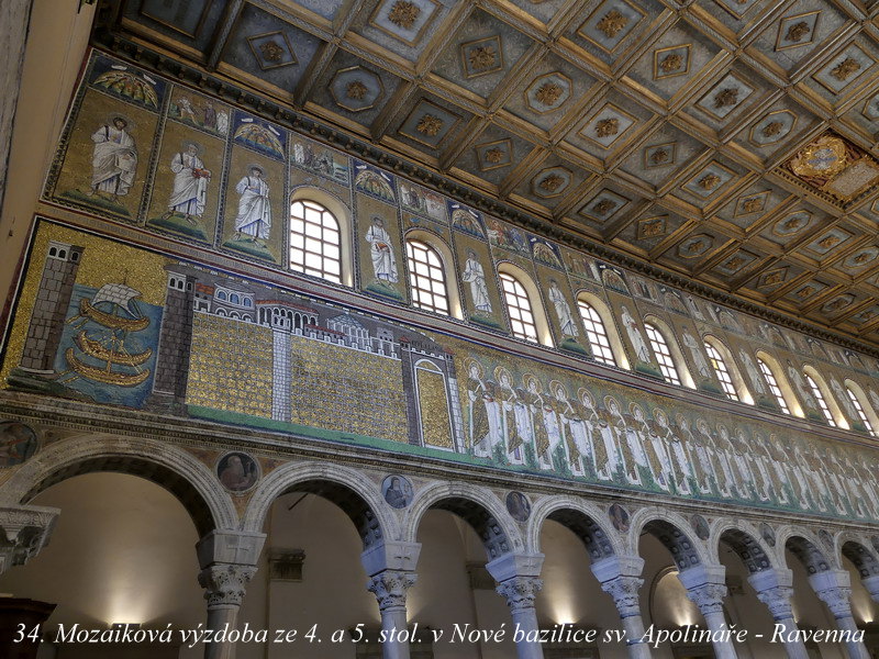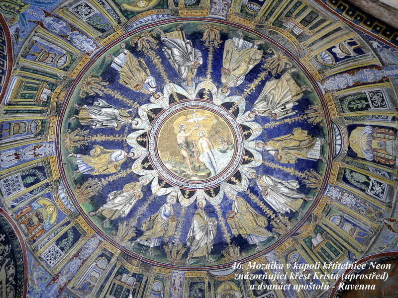V samotné Ravenně je potom také hodně co k vidění. I zde je kostel zasvěcen Svatému Apolináři, který vystavěl v šestém století ostrogótský král Theoderich. Ten dal pokyn k vybudování ještě i dalších staveb, včetně starobylého baptisteria. My jsme navštívili jinou „křtitelnici“, která pochází teprve z pátého století a jejíž výstavba byla iniciována z podnětu biskupa Neona. Proto také nese název