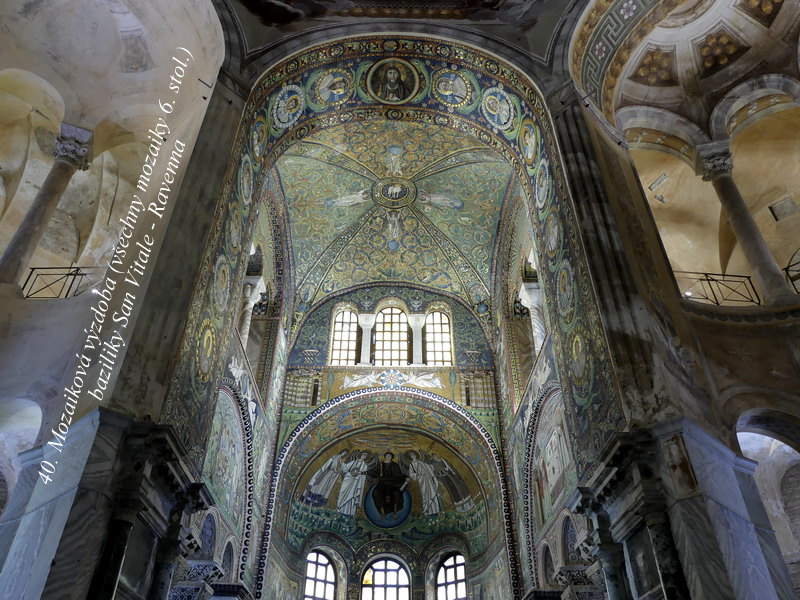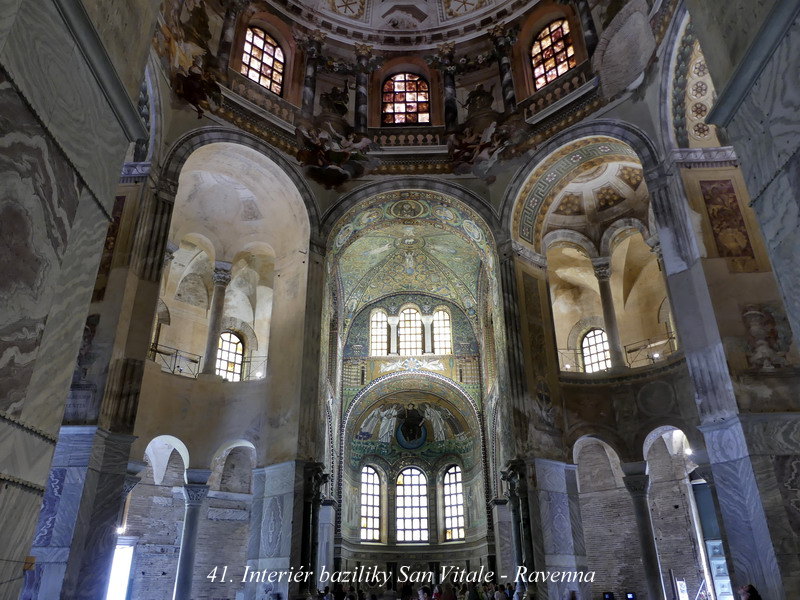 San Vitale. Vznikla v šestém století a její architektonický tvar má své prvky převzaté z Baziliky Božího hrobu v Jeruzalémě. Vnitřní výzdoba je opět mozaiková a jak je jistě vidět i z Honzových fotek, je také překrásná. Ostatně sama Ravenna byla po rozpadu Římské říše načas hlavním městem západní části křesťanského světa, a výzdoba zdejších svatostánků tomu i odpovídá.