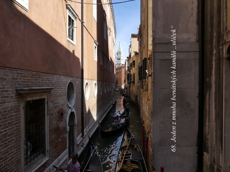 Po návratu do benátského přístavu jsme se s kamarády rozhodli, že ještě obejdeme celé město a zastavíme se na Náměstí sv. Marka. Ušli jsme celkem dost kilometrů a viděli z Benátek asi to nejkrásnější (nebo možná spíše to nejznámější), a zdejší památky jsou opravdu velkolepé, ale množství turistů je tady neskutečně velké. Zlatá Praha a její poloprázdné uličky v ranních a večerních hodinách. Benátky asi nikdy nespí a podle manžela, který zde kdysi byl i uprostřed noci, se o žádném poklidném pobytu tedy moc hovořit nedá. Na druhou stranu je třeba říci, že jsme se při svém pobytu v Itálii, a to i přímo v Benátkách, setkali vždy s velkou ochotou poradit nám a ukázat případně cestu. Honza přitom bravurně zvládl i nejvyšší dopravní špičku v Benátkách a to ještě za situace, kdy jsme špatně odbočili a pak jsme se uprostřed odpolední kolony otáčeli do správného směru. Bravo Giovanni!