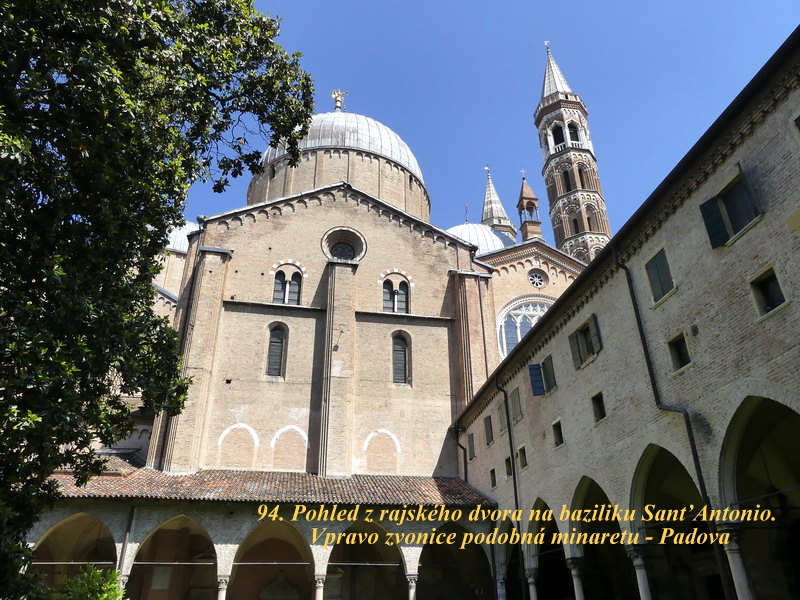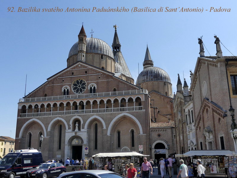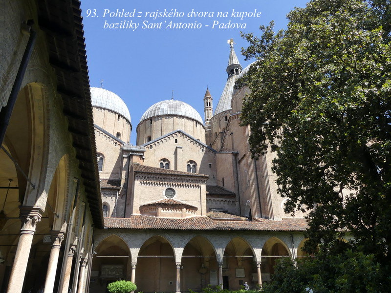 V průběhu pobytu jsme už trochu začali tušit, že všechny naplánované výlety asi nestihneme, a tak jsme se z časových důvodů rozhodli, navštívit alespoň ještě město Padova. To je také proslulé řadou památek a my jsme z nich viděli jako první Baziliku sv. Augustiny (Justíny), ale hlavně nás nadchla Bazilika sv. Antonína Paduánského, která je slohově kombinována z několika prvků, včetně románských a byzantských. Jedná se v podstatě o komplex několika propojených budov, které ukrývají i malé galerie, včetně obchůdku se suvenýry, kde najde návštěvník kromě tradičních náboženských předmětů i hodně bylinkových výrobků, éterických olejů a také různých mastiček nebo včelích produktů. Většina z nich přitom pochází nikoliv snad z Číny, ale jsou zhotovovány v místních charitách anebo pěstovány v přilehlých klášterech.