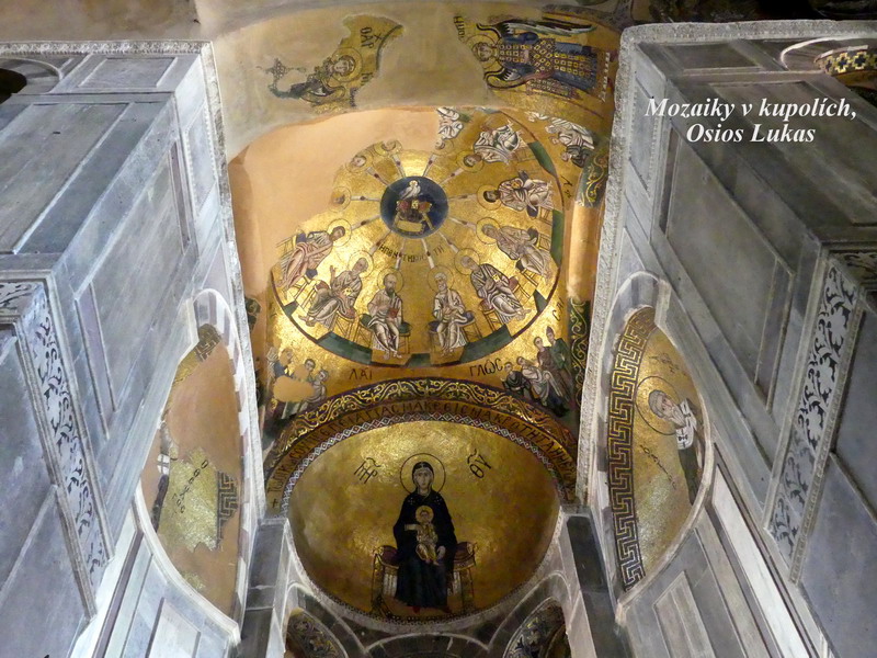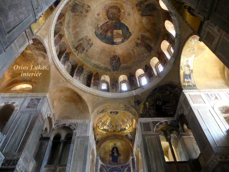 Ossios Lukas. Po dálnici nám to trvalo asi tři hodiny, ale cestovalo se nám dobře, protože jak už jsem psala jinde, na řecké A1 nebyl žádný velký provoz. Ani jsme se přitom moc nenudili, protože v této krajině máte kolem sebe krásná panoramata okolních horských masivů, z nichž vrcholky mnohých jsou i zde celoročně pokryty sněhem.