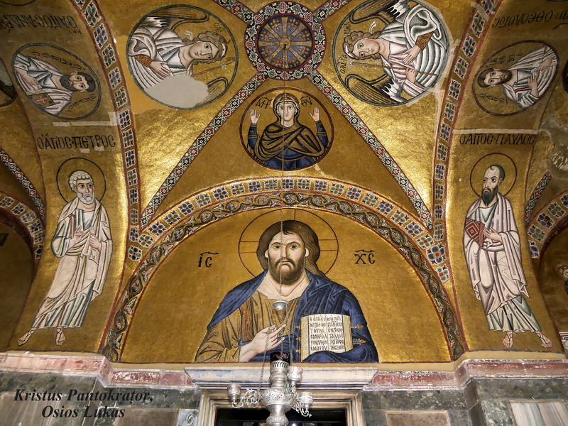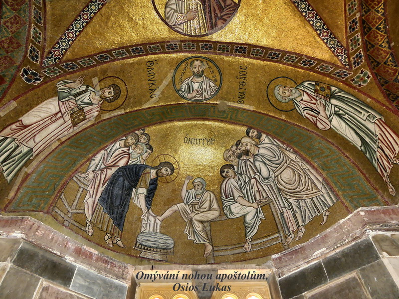 Klášter samotný je vzdálen asi 150 km od Atén, a protože patří do seznamu Unesco, přijíždí sem poměrně dost turistů. My jsme ale měli docela štěstí, neboť jako i na mnoha dalších poutních místech jsme v nitru kláštera pobyli nějaký čas takřka úplně osamoceni. V kostele také bylo možné pořizovat fotografie, takže máme pár krásných fotek na památku, a já osobně jsem si z tohoto svatého místa odnesla asi nejduchovnější prožitek z celé cesty. Pod klášterem je totiž uchována hrobka zakladatele chrámového komplexu, blahoslaveného Lukáše, a to je velice silný energetický prostor. Samotný světec se mi jevil jako nesmírně laskavý, ale i velice moudrý člověk, který stále vyzařuje vysokou duchovní vibraci. V tichu jeho krypty jsem si dovolila světce o něco požádat a zažila jsem tu pak nečekaný, ale pro mne osobně velmi posilující okamžik. Věděla jsem v tu chvíli naprosto jistě, že na toto místo jsem měla přijít, že ta cesta určitě stála za to, a ještě navíc jsem se tu utvrdila v přesvědčení, že musím navštívit i hrobku sv. Konstantina v Římě. Jako by Vaši duchovní průvodci už sami dobře věděli, na jaké další místo Vás mají poslat.