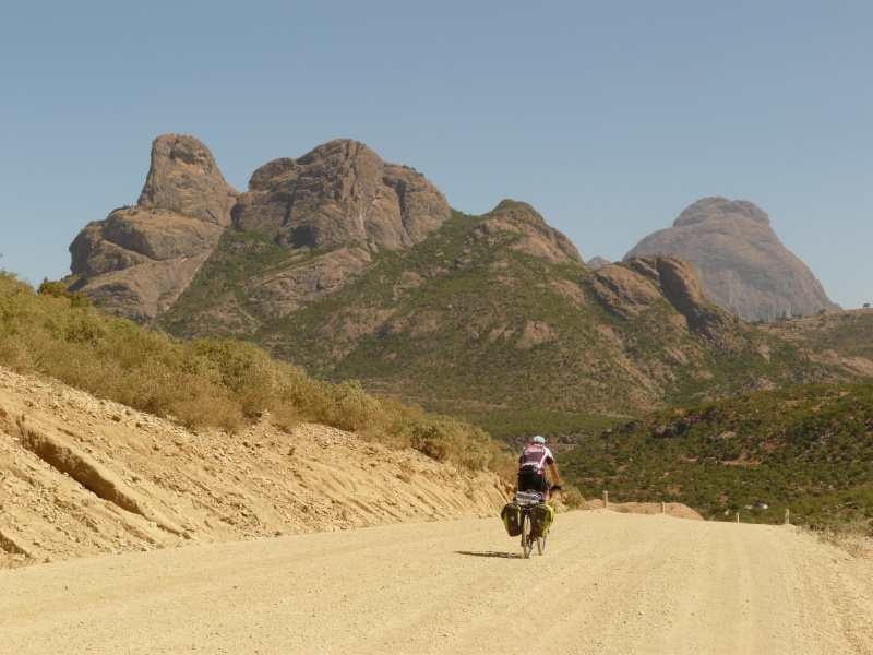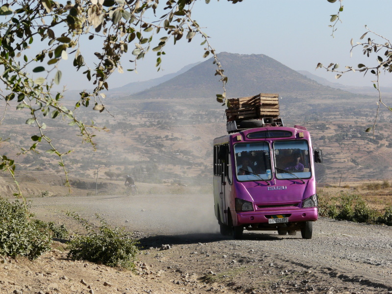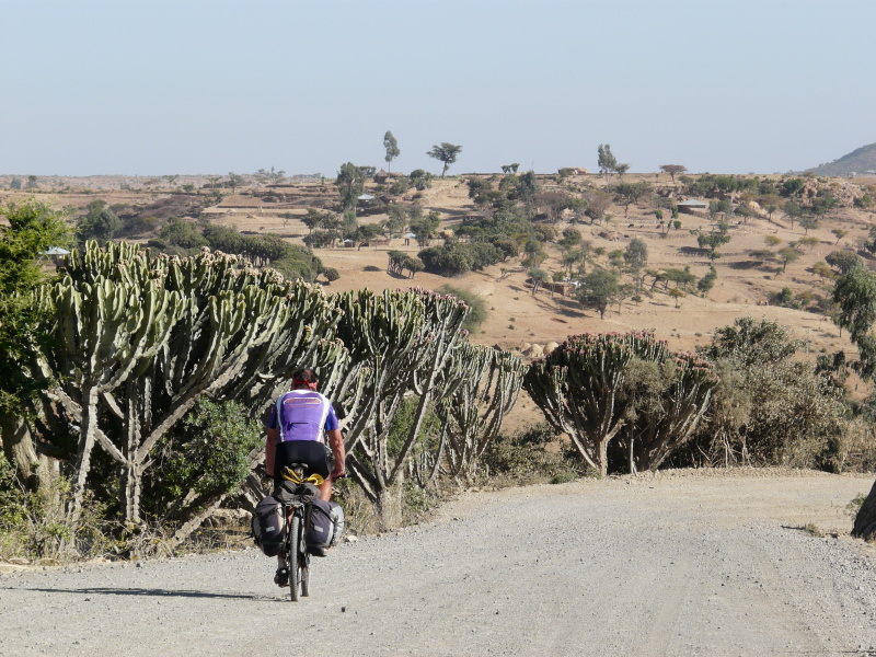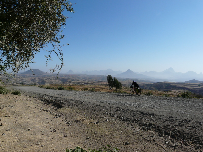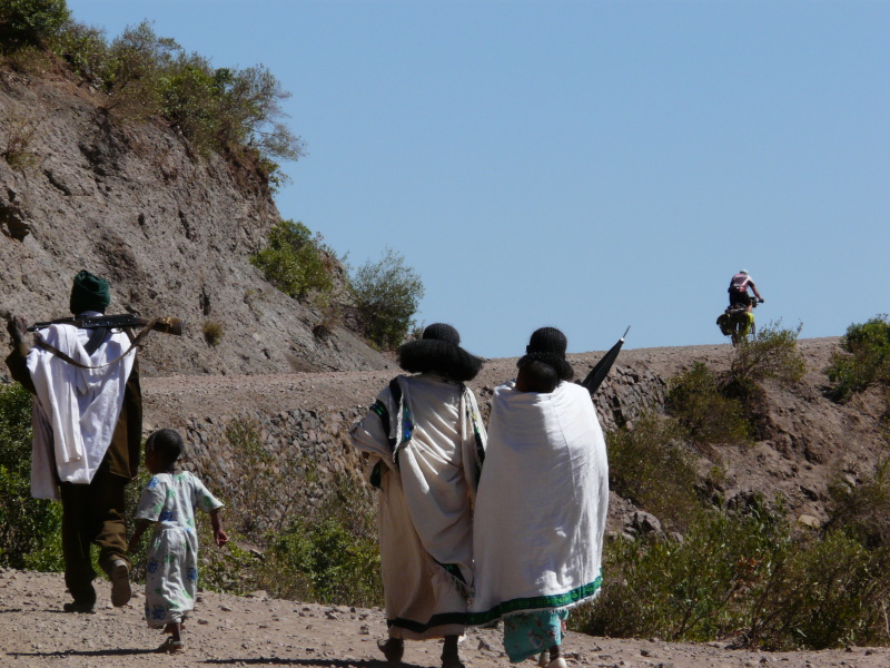 Hned jak jsme ráno vyjeli, Zdeněk přetrhl řetěz, ale v jeho podání to bylo jen 5 minut zdržení. Městem Axum vede nepříliš kvalitní asfaltka, která pokračuje po rovině ještě dalších 8 km za město. Na tomto úseku jsme potkali trojičku mladých cyklistů, kteří zde trénovali tak, že zmíněných 8 km jezdili neustále tam a zpátky. Dál to je podle nich příliš „nebezpečné“. Tak jsme si říkali, co tady asi tak natrénují.