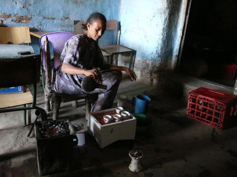 Učitel si to pak u nás pohoršil tím, že pro nás domlouval v hospodě jak snídani, tak její cenu a docela nás natáhl. Určitě to nemyslel zle – spíše si myslel, že kamarádovi hostinskému zařídí od dvou bohatých bělochů pěkný výdělek – ale v naších očích tímto klesl hodně hluboko. Kozí maso s houskami, čajem a kolou stálo pro oba celkem 85 Kč, což je na Etiopii více než dost. Nechali jsme to tak, protože když si člověk nedomluví cenu předem, po jídle je to už zbytečné.
