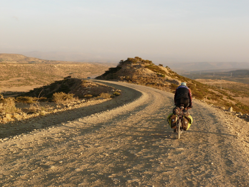 Nahoru – do výšky 3250 m n.m. jsme vyjeli přesně v 18 hod. To už teplota klesla na 13 °C a velmi rychle se stmívalo. Navíc začal foukat velmi chladný protivítr. Navlékli jsme na sebe co se dalo a rychle jeli dolů. Do první vesnice (v nadm výšce 2670 m n.m.) jsme přijeli už za úplné tmy. Rychle jsme našli ubytování za 15 birr (24 Kč), ale pak začal kluk smlouvat, že to myslel na osobu a ne za pokoj. Tak jsme mu řekli že ano, ale že každý bude mít svoji místnost. A najednou to bylo zase 15 birr, což vůbec nechápu, protože celá řada místností k pronájmu zela prázdnotou a hoch si mohl přijít zcela bezpracně na dvojnásobek.