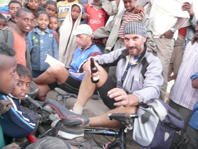 Na 50. km jsme dojeli do městečka, kde jsme poobědvali vlhkou a kyselou injaru s pivem a rozhodli se pokračovat až tam, kam to půjde. Silnička se ještě chvíli držela na 2800 m n.m., pak začala padat a po dlouhém sjezdu liduprázdnou a hodně pustou krajinou jsme večer před setměním přijeli do malé vesničky. Ihned bylo kolem nás sroceno veškeré tamní obyvatelstvo, a to úplně natěsno. Já zůstal sedět u jediného krámku, kde jsem popíjel teplé pivo, Zdeněk šel shánět nocleh. Jakým zázrakem se mu to podařilo nevím, ale něco sehnal. Prý tam bude ale volno až za hodinu, neboť v malé místnosti s dvojpostelí seděli chlapi na rantlíku kolem zdí a popíjeli pivo. Asi tam sedávali často, protože v hliněné podlaze byly zašlapány stovky víček od piva.