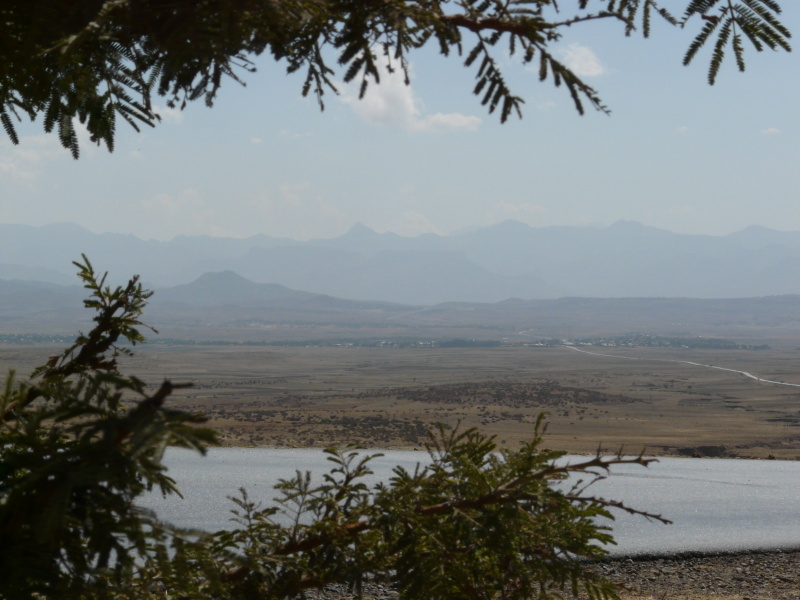 Silnice byla zprvu skoro dálnicí (4 pruhy), aby se po 20 km zúžila na dva, a aby hustý provoz ustal téměř na minimum. Jeli jsme po hodně vyfukující náhorní planině v nadm. výšce 2800 m n.m., profil krajiny byl jen mírně nahoru a dolů. V dáli se ale před námi rýsovaly na horizontu vysoké hory, což ukazovalo, že si ještě dnes mákneme.
