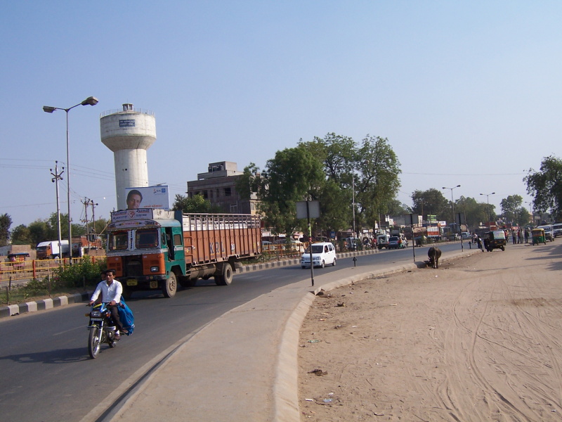 Než jsem si v překvapivě čisté čekárně na autobusovém nádraží naskládal věci na kolo a u jednoho stánku pojedl, přehouplo se poledne a slunce pálilo jako zběsilé. Teploměr mi ukazoval ve stínu teplotu 45 °C, ale i tak jsem se velmi těšil na to, až konečně vyjedu. Ahmedabad je obrovské město, rozlezlé po vyprahlé rovině několik desítek kilometrů daleko. Dalo mi dost práce se z centra vymotat, neboť značení nebylo buď žádné nebo napsané obrázkovým písmem, které jsem nedokázal přeluštit. Po pár zeptání a jedné zajížďky se mi to nakonec podařilo. Bohužel jsem jel stále po čtyřproudé, hodně frekventované silnici, bez jediného stínu, a já se po 40 km jízdy cítil totálně přehřátý. Navíc nebylo kolem moc co ke koukání a já začal přemýšlet, že se k večeru opět poposunu autobusem, abych se dostal mimo tuto hlavní dopravní tepnu, odkud zatím nebylo pro mě úniku.