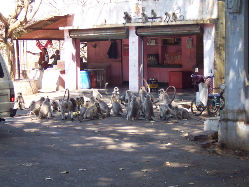 Silnice vede celých 25 km do kopce, a i když stoupání není zas až tak strmé, vražedné slunce a nedostatek stínu mi z toho udělaly docela obtížný výšlap. Původně jsem si říkal, že bych si mohl nechat všechny věci dole a vyjet jen tak nalehko, nakonec jsem se rozhodl vláčet vše s sebou nahoru. Kamarád Zdeněk, který tady byl před pár lety, mi totiž tvrdil, že se stejně budu muset vracet stejnou cestou zpátky, mapa mi však říkala něco jiného a já měl proto v plánu zeptat se místních, kudy se dá sjet dolů na opačné straně. Předzásobil jsem se vodou a velmi klidným tempem jsem vyrazil nahoru. Teplota vystoupala na slunci těsně k 50 °C a ze mě lilo jako kdybych byl neustále pod sprchou. Tři litry jsem vypil natorata a kdyby nebyla v polovině kopce restaurace s možností dokoupení vody, asi by byl zbytek stoupání pro mě velmi obtížný. U restaurace bylo celé stádo opic, které se lidí vůbec nebály a které místní i indičtí turisté krmili banány. Za tři a půl hodiny jsem byl sice nahoře, ale pak jsem se zbytečně zdržel tím, že jsem se minimálně desetkrát musel ptát na cestu k „Jain Temple“. Nikoho totiž ještě nenapadlo dát na silnici dvojjazyčné cedule. Nakonec mi poradil úplně malý kluk na kole, jehož angličtina byla tak skvělá, jakoby byl rodilým mluvčím.
