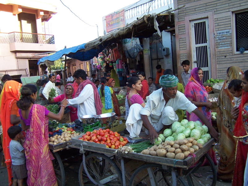 Tím, že jsem jel neustále po rovině a nefoukal žádný vítr, těsně před polednem jsem měl „nakroucených“ 90 km. Právě jsem přijel do městečka Raniwara, kde jsem dnes poprvé zastavil na trochu jídla. Ihned se na mě nalepilo několik desítek lidí – jako vosy na bonbón. Majitel krámku s občerstvením je ode mě odháněl plácačkou na mouchy, ale téměř marné bylo jeho počínání. Přežil jsem to jen s největším přemáháním, na druhé straně jsem si trochu odpočinul a nacpal se sladkostmi, které jsou po celé Indii obdobné a docela chutné. Jen jsou oproti ostatnímu jídlu výrazně dražší.