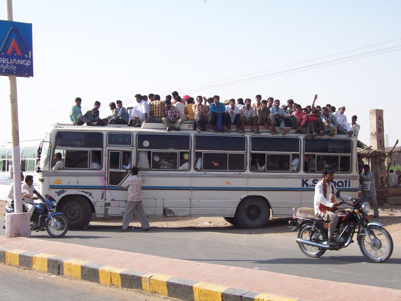 Autobusové nádraží bylo cítit močí a výkaly ještě o trochu víc než tomu bylo v ulicích. Úplně mě z této koncentrace štípaly veškeré sliznice. Naštěstí „můj“ autobus odjížděl hned, sotva jsem přijel. Stěží jsem stihl naložit kolo na střechu. Lístek stál 70 rupií plus 30 rupií za kolo, což byla úplná láce. Hned na první zastávce mi však zatrnulo. Tady přistupovala početná cikánská rodina a dle všeho právě kočovala do jiného působiště. Soudil jsem to podle věcí, které skupina několika mužů nakládala na střechu. Vynášeli veliké stany, peřiny, hrnce, pytle s oblečením aj. S neblahou předtuchou jsem vylezl po žebříku na střechu a co nevidím – přes moje kolo byly pohozeny peřiny a přikrývky a chlapi, kteří vylezli nahoru později, po těch peřinách chodili, aniž by tušili, co drahocenného se pod nimi skrývá. Úplně mě chytil amok a jako smyslu zbavený jsem na ně začal řvát a peřiny a nějaké kastroly, které se mi dostaly pod ruce, jsem začal shazovat dolů. Už po pár vteřinách jsem začal litovat svého počínání – za prvé byli v přesile a za druhé jsem neznal jejich mentalitu. Nemohl jsem tedy tušit, jak se zachovají. Naštěstí na mě jen chvíli překvapeně hleděli a pak začali s velikými omluvami svoje věci přeskládávat. Bicyklu a hlavně výpletům kol se jako zázrakem nic nestalo, takže jsem se jim i já gesty omluvil. Podali jsme si chlapsky ruce a to už jsem věděl, že kolo až do Jaisalmeru ohlídají jako oko v hlavě. Většina z nich totiž cestovala s věcmi na střeše, dovnitř si šly sednout jen ženy s dětmi. Představení, které jsme pro ostatní cestující předvedli, bylo však velkolepé.