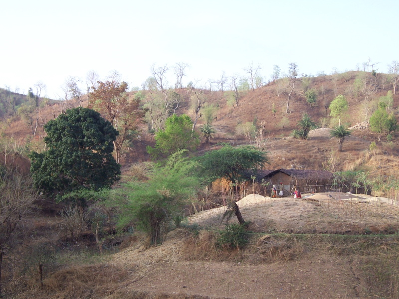 Silnice byla na mé mapě zakreslena z Udaipuru až do cílového města Abu Road téměř přímo, ve skutečnosti to bylo úplně jinak. Vesnice Moro, odkud měla vést vedlejší silnice přímo do Abu Road neexistovala, cesta už vůbec. Nechápu, podle čeho se mapa kreslila. Ač nerad, musel jsem si oklikou zajet až do města Pindwara, odkud to bylo už opět přímo. Celou dobu jsem jel dnes v kopcích, takže mi to vlastně ani nevadilo, protože se bylo na co koukat. Kopcovité a zarostlé panorama je totiž mnohem pestřejší než ubíjející vyprahlá rovina. Navíc mi opět vál vítr přímo do zad, takže i přes mnohá stoupání jsem byl v Pindwaře (108 km) už ve 13 hod. Tady jsem se jen najedl a napil, nic jsem neprojížděl, ani si neprohlížel, neboť toto městečko mi připadalo totálně nezajímavé a zašlé, stejně jako desítky a stovky jiných podobných indických měst.