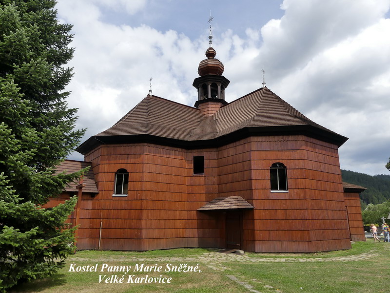 Ve Velkých Karlovicích jistě stojí za to navštívit místní dřevěný kostel, stavěný na svou dobu mistrným způsobem, a i přiléhající muzeum lidových umění a řemesel. Nám se zde líbily dřevěné sochy pana Tomáše Dujky, viz ukázka ve fotogalerii. Další malá skrytá galerie, o které moc lidí ale neví, je asi dva kilometry z Velkých Karlovic směrem na