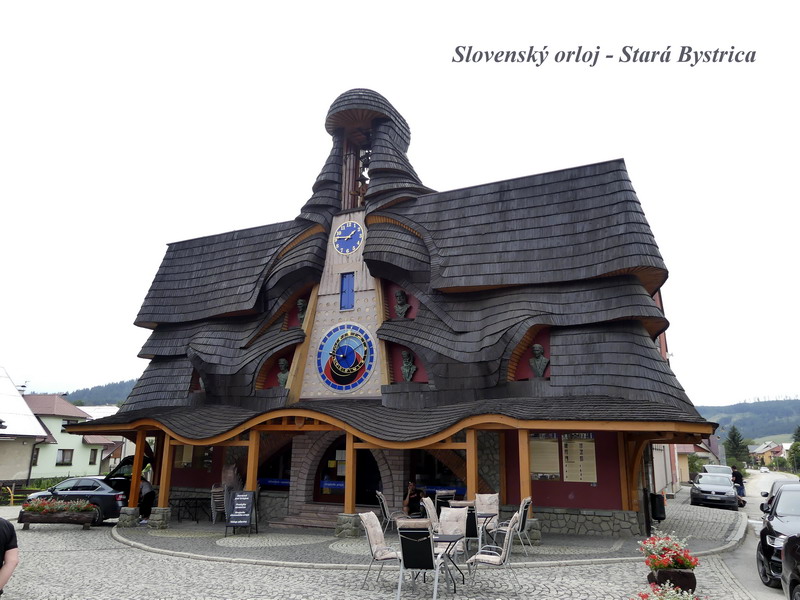 Z Turzovky jsme se někdy kolem poledne vydali do Staré Bystrice prohlédnout si místní novodobý orloj. To je pěkná dřevostavba, zajímavým způsobem koncipovaná. Musím ale říci, že pro mne tím pravým orlojem zůstane asi nadále jenom ten pražský, pro svoji magickou pověst a pohnutou historii. Docela nemile nás také překvapilo, že před časem někoho napadlo, sundat z bystrického orloje původní dřevěné sochy světců, a nahradit je jinými, které na sobě mají nalepeny fotografie některých slovenských osobností 20.století. Původní sochy skončily zastrčené na vnitřním ochozu uprostřed orloje, kde je ovšem málokdo najde.