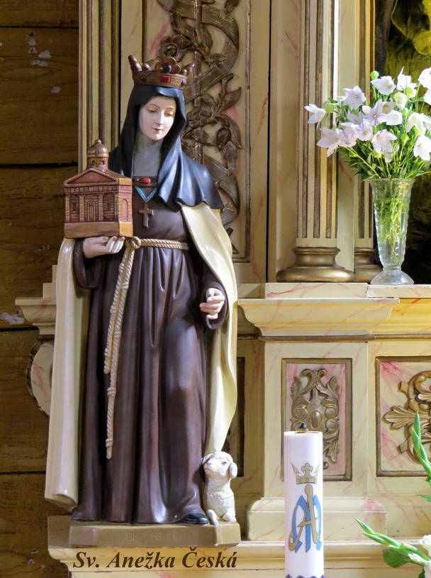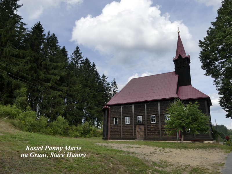 Grůni. Klíče od něj jsou uloženy v Domě u svatého Josefa, kousek od památky, a po domluvě vás zdejší majitelé kostelíkem rádi provedou. Je to moc pěkný svatostánek, určitě bychom doporučili zajet se k němu podívat, protože je tu krásná atmosféra, podbarvená místní lidovou tradicí. I pro děti mají tyto kostely svoje kouzlo, jsou prostě takové pohádkové, a když si člověk ještě představí závěje sněhu venku, tmu všude vůkol a uvnitř rozžaté svíce, tak se mu také zdá, že se i on přenesl do nějaké lidové pověsti či pohádkového příběhu. Jaká krása se může skrývat v jednoduché prostotě a jakou marnost občas představují některé pompézní církevní stavby.