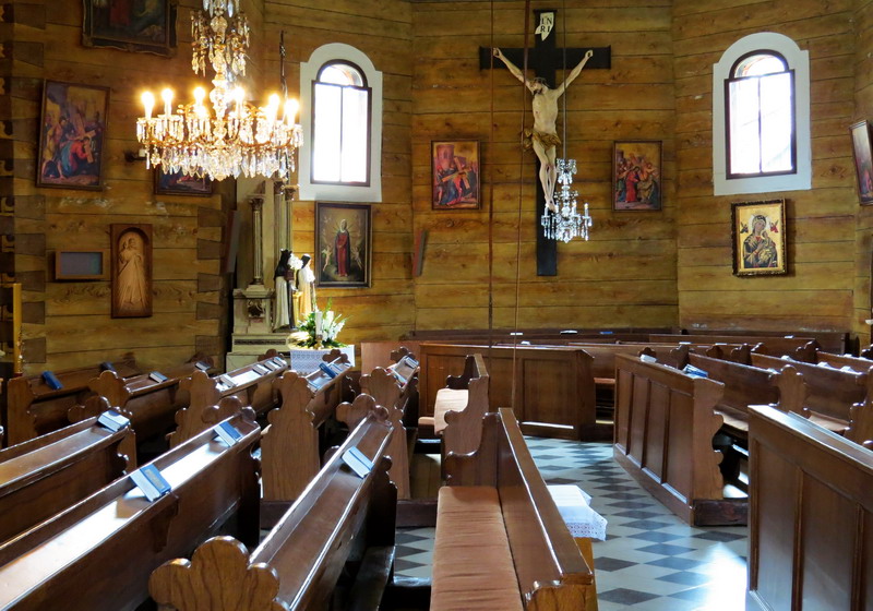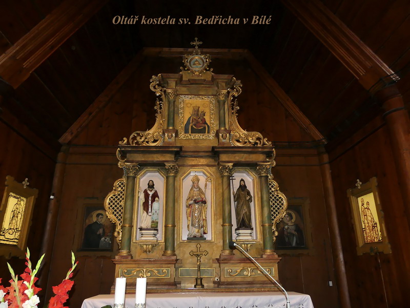 V podvečer téhož dne jsme se ještě domluvili s místní paní průvodkyní, že nám přijde otevřít dřevěný kostel, vedle kterého jsme byli ve vesnici Bílá ubytováni. Je to poměrně velký chrám s krásnou výzdobou a neuvěřitelně šťastným osudem. Původně to byl totiž tento kostel, který si vybrali žháři z Ostravy, že by ho mohli zapálit. Až tady jsme si vyslechli celý ten příběh, ve kterém opravdu nešlo jen o takové nějaké nahodilé lhářství pod vlivem alkoholu, ale že si pachatelé dopředu vybírali z těchto dvou kostelů (v Bílé a v Gutech), který zničí. Svatostánek v Bílé měl to štěstí, že se tam zrovna prováděla nějaká menší rekonstrukce, a přitom někdo z místních ty hošany zahlédl, a z blízkosti kostela je vyhodil. No a tak se tedy rozhodli zapálit raději kostelík v Gutech.
