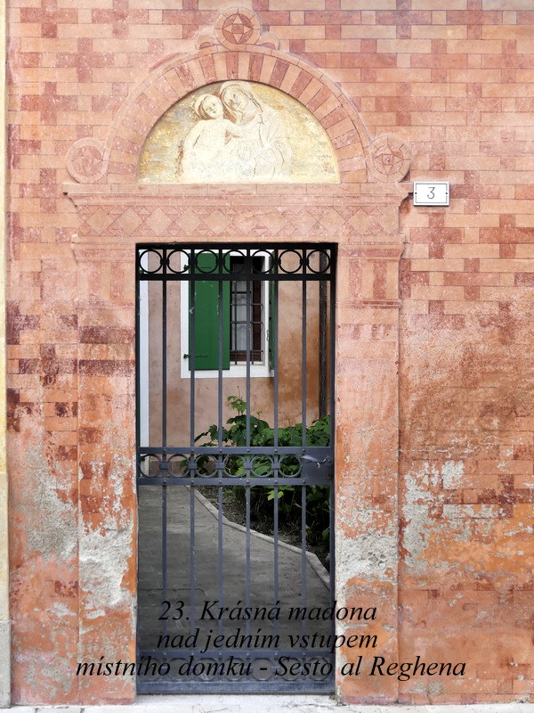 O kousek dál, směrem k Benátkám, se pak asi 5 km od hlavní dálniční trasy nachází staré opatství Sesto al Reghena. To bychom určitě doporučili navštívit, bylo to velmi krásné místo, duchovně stále živé, navíc obklopené velkým parkem. Uvnitř nebylo možné pořizovat fotografie, tak zde nebudou ani vloženy, ale dám sem alespoň odkaz na webové stránky. Zde jsme strávili také nějakou chvilku, ale čas už nás tlačil, abychom stihli ještě včas dorazit do místa našeho ubytování. To se nacházelo v obci Rosolina, v malém zahradním domku. Ten jsme si pronajali od jednoho staršího manželského páru a vůbec jsme nelitovali toho, že jsme si nakonec vybrali Rosolinu, i když se v této době dá najít v přímořských apartmánech ještě mnohem levnější ubytování. Starý pán byl včelař, stejně jako je můj kmotr, a jeho paní zase vytvářela krásnou zahradu kolem jejich starobylého domu. Musím říci, že jsem ještě v životě nepotkala tak oduševnělý pár dvou lidí, ze kterých doslova vyzařovalo světlo a harmonie. To bylo jako malý zázrak. Přitom jsme se jazykově vůbec nijak nemohli dorozumět, starší generace Italů nemluví moc anglicky, ale to nám vůbec nijak nevadilo. Požehnání a obejmutí od tohoto pána a paní jsem si nakonec dovezla jako jeden z nejsilnějších zážitků z naší cesty vůbec.