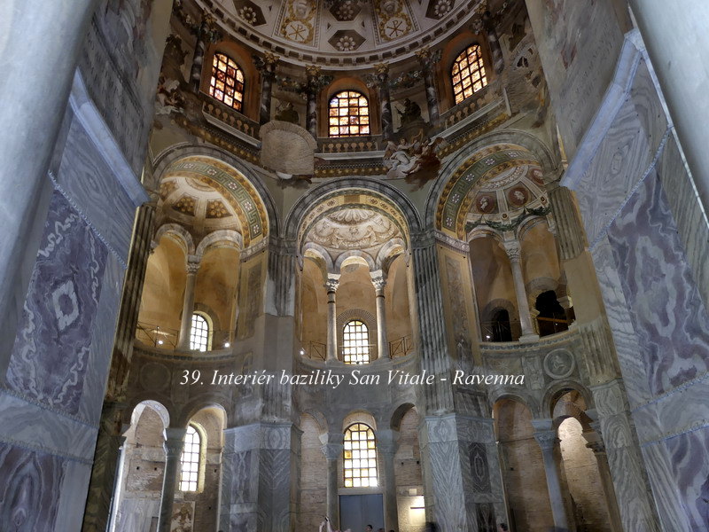 San Vitale. Vznikla v šestém století a její architektonický tvar má své prvky převzaté z Baziliky Božího hrobu v Jeruzalémě. Vnitřní výzdoba je opět mozaiková a jak je jistě vidět i z Honzových fotek, je také překrásná. Ostatně sama Ravenna byla po rozpadu Římské říše načas hlavním městem západní části křesťanského světa, a výzdoba zdejších svatostánků tomu i odpovídá.