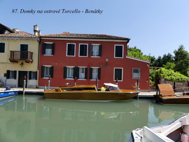 Ostrov bližší k Benátkám se nazývá Murano a po staletí ho obývali proslulí mistři skláři. O něco vzdálenější je pak podobně znějící ostrov Burano, a tam se zase věnovali výrobě skvostných krajek. No, my jsme se tam jenom krátce prošli po uličkách plných barevných domečků a pak už jsme pokračovali dál lodí na ostrov Torcello.