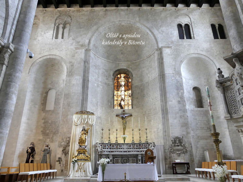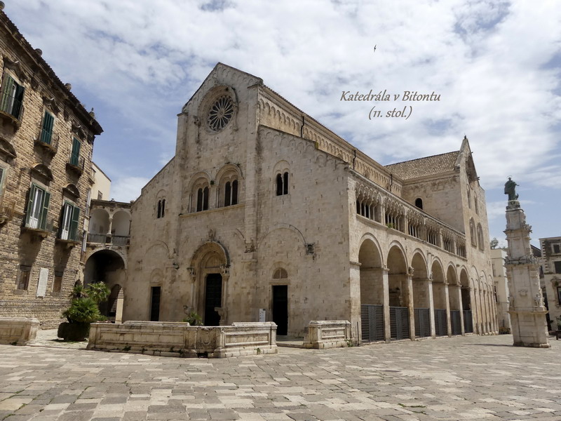 První den našeho pobytu jsme hned z letiště v Bari zamířili do městečka Bitonta, kde se nachází krásná románská katedrála zasvěcená Matce Boží. Podobných křesťanských staveb je v Apulii více, my jsme navštívili jen některé z nich, a jiní poutníci zase třeba objeví kouzlo těch ostatních. Katedrála v Bitontu podle mého úsudku určitě patří k těm duchovním chrámům, do jejichž nitra stojí za to vstoupit.