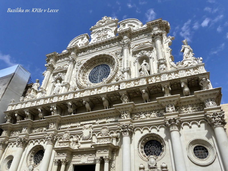 Kousek od opatství Santa Maria di Cerrate leží městečko Lecce, známé svou bohatou barokní výzdobou. My jsme si městečko prošli během jednoho odpoledne a vskutku se dá říci, že stojí za to zhlédnout památky zdobící město. Ovšem poutníkovi, který se obdivuje kráse vrcholného baroka v českých zemích, vetknuté do díla Matyáše Brauna, Petra Brandla nebo Santiniho, se může jevit barokní umění městečka Lecce jako mírně přeplácané, a hlubokého výrazu českého baroka nedosahující.