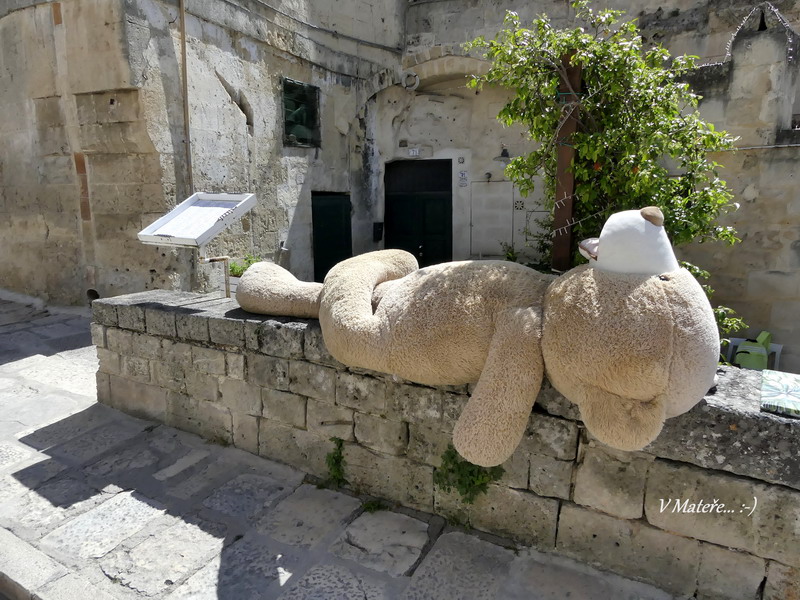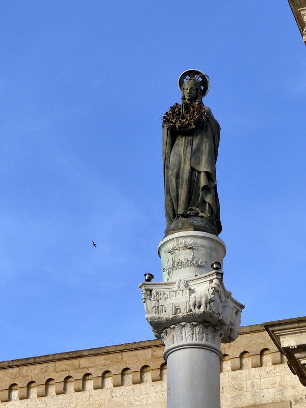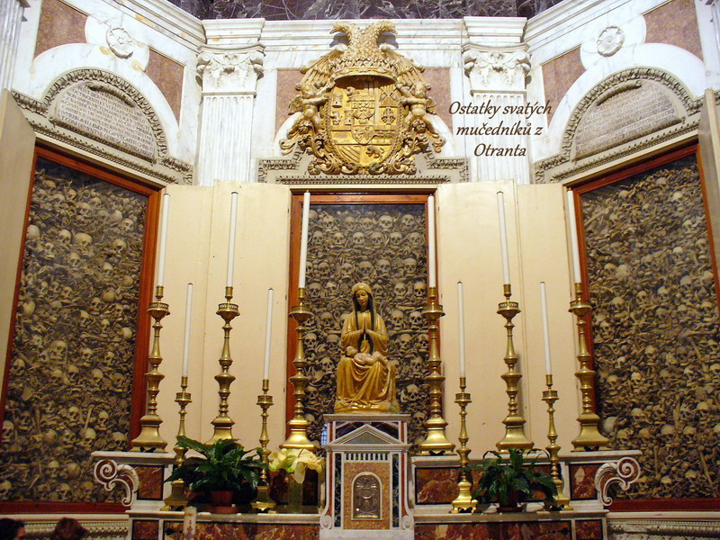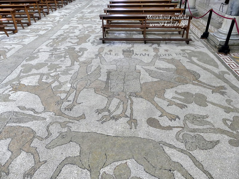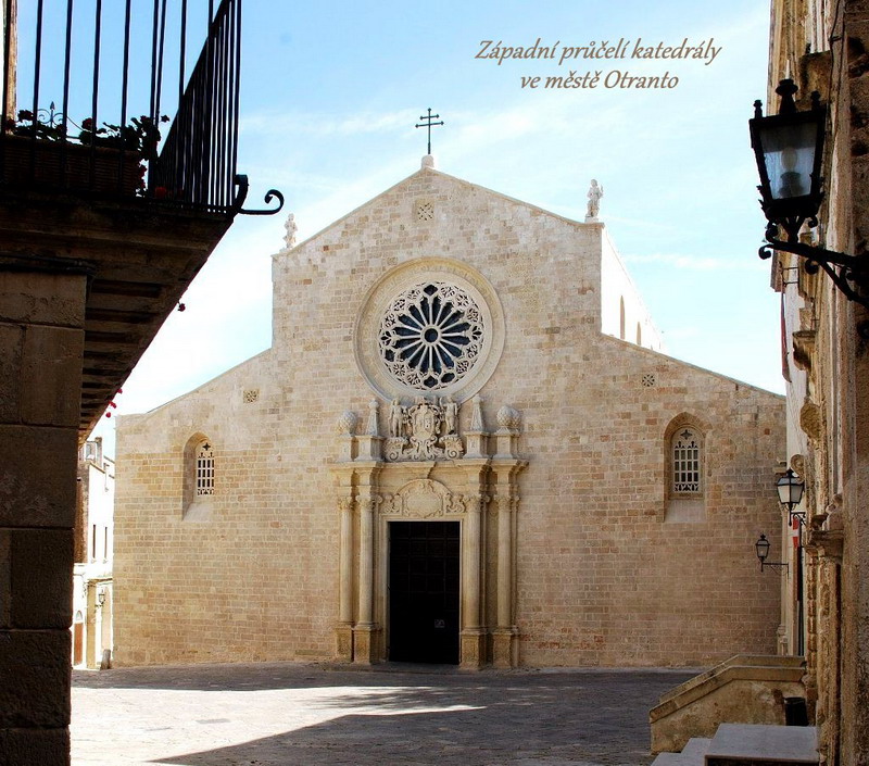 Velmi půvabné Otranto, označované jako nejvýchodněji ležící město Itálie, nabízí poutníkům k návštěvě svoji krásnou katedrálu s románskou rozetou a úchvatnou mozaikovou výzdobou, která pokrývá celou podlahu svatostánku. Najdete zde biblické postavy i obrazy panovníků, ale raritou je myslím kocour v botách, kterého jsme také mezi zdejšími mozaikovými výjevy našli. V kapli mučedníků pak leží ostatky stovek obyvatel Otranta, kteří byli při nájezdu Osmanů v roce 1480 hromadně stati, když odmítli přestoupit na muslimskou víru.