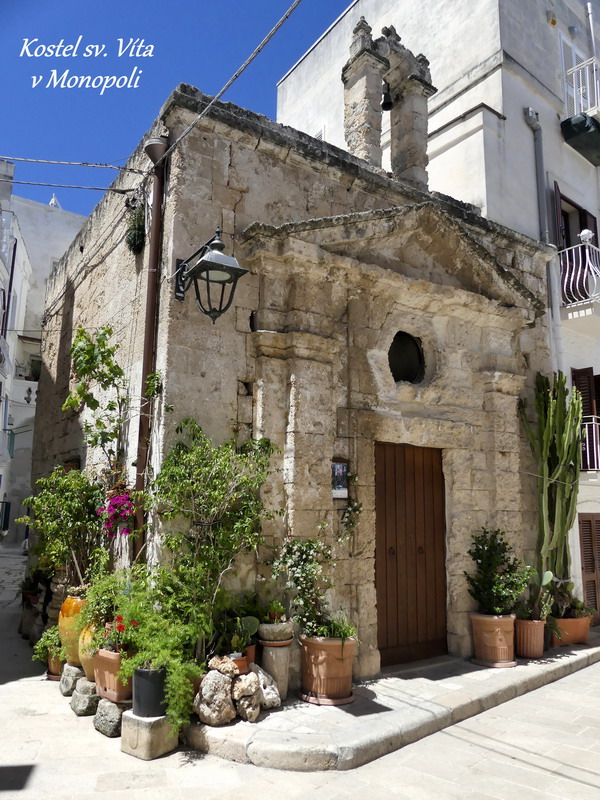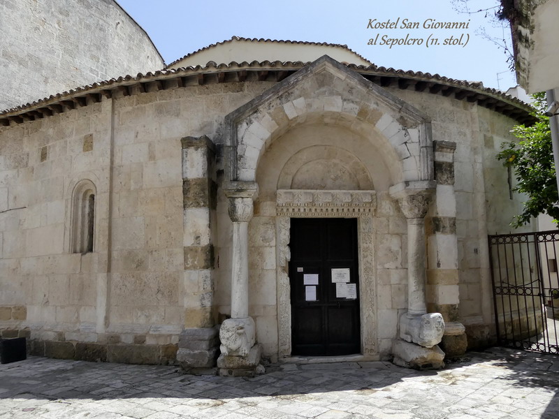 Z mnoha dalších památek, které město Brindisi zdobí, bych ještě ráda upozornila na zajímavý Kostel Svatého hrobu, malý templářský chrám, založený jedním z hlavních vůdců prvních křižáckých výprav, Bohemundem z Tarentu. Zde opravdu dýchá na poutníka staletá historie, jež byla prodchnutá zápalem pro křížové výpravy a touhou po znovuzískání Svaté země.