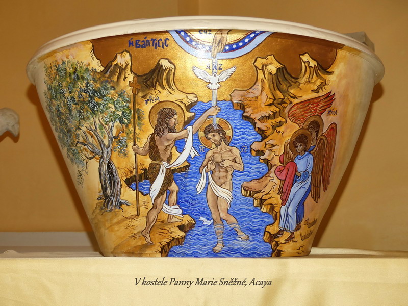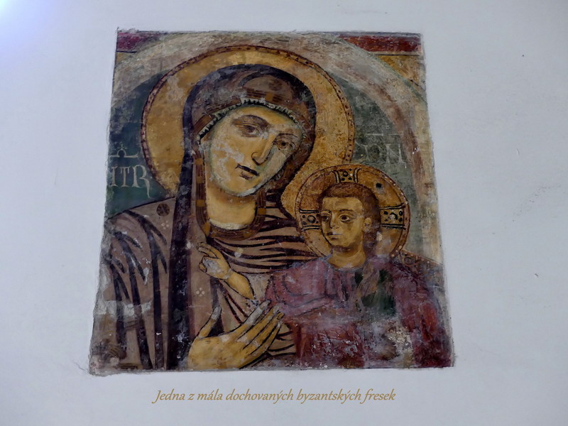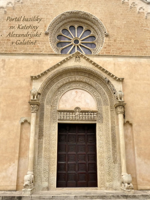 Při zpáteční cestě z Leucy do našeho ubytování jsme se vraceli skrze vnitrozemí, protože jsme měli v úmyslu zastavit se ještě ve městečku Galatina a prohlédnout si zdejší románskou katedrálu Santa Caterina d´Alessandria, jejíž zdi zdobí krásné fresky ze 14. století. Galatina přitom není sama o sobě nijak zvlášť výjimečným městečkem, ale zdejší katedrála je opravdu velmi pěkná. V jejích prostorách se nachází i malinké muzeum, které ukrývá předmět mimořádně silně duchovně vyzařující. Jedná se o mozaikovou ikonu Krista vytvořenou mikroskopickými kamínky, což je už samo o sobě mistrovské dílo. Navíc ovšem ikona, byť ukrytá pod bezpečnostním sklem, vyzařuje velmi silnou energii, léčivou a harmonizující. Ikona byla přivezena z Konstantinopole ještě před jejím dobytím Turky a mně osobně jenom potvrzuje můj dojem z našich cest, že východní křesťanské církve v sobě ukotvují duchovně silnější pramen původního Evangelia. Pro mne byl pohled na tuto ikonu tím nejsilnějším duchovním zážitkem, který jsem si z cesty po Apulii domů přivezla.