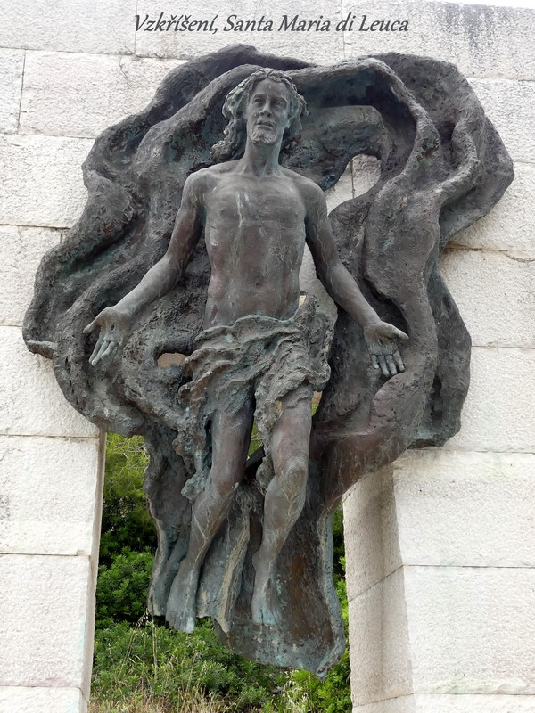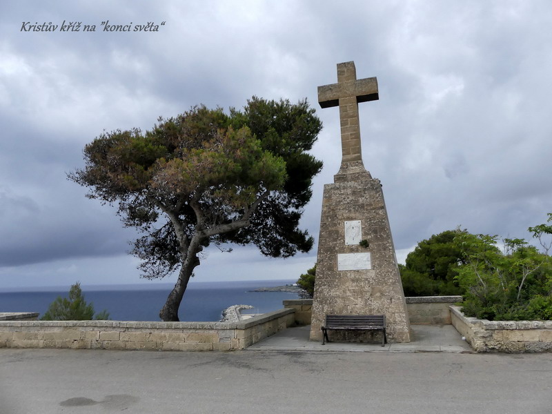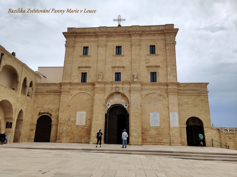A pokud se z nejvýchodnějšího města Itálie chcete podívat až na samý „konec země“, stačí ujet asi 50 kilometrů podél pobřeží a ocitnete se u katedrály Santa Maria di Leuca nebo také Santa Maria de Finibus Terrae, která svého času opravdu představovala půdu, kterou od další pevné země oddělovala dvě moře. V katedrále jsme kromě jiných světců našli i obraz našeho Jana Nepomuckého, vznášejícího se na Vltavě pod Karlovým mostem. Poblíž katedrály pak vede blízkým přírodním parkem velmi pěkná křížová cesta zdobená vkusnými bronzovými plastikami.