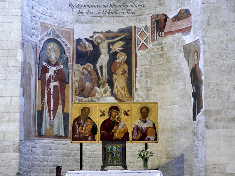Jsou ale i jiná místa v Apulii, která mají silnou duchovní přitažlivost pro přicházející poutníky, a k těmto patří i hlavní město zdejšího kraje Bari. V jeho katedrále zasvěcené svatému Mikuláši potkáte u světcova hrobu opravdu velké množství křesťanských poutníků, z nichž velká část patří k pravoslavné církvi. Svatý Mikuláš je hlavní světec ruského národa, po Panně Marii druhá nejuctívanější postava pravoslavných křesťanů, a proto pociťuje řada Rusů touhu vykonat pouť do Baziliky svatého Mikuláše, ležící v Apulii. I v době naší návštěvy se v kryptě baziliky konala pravoslavná mše za účasti mnoha poutníků ruské národnosti.