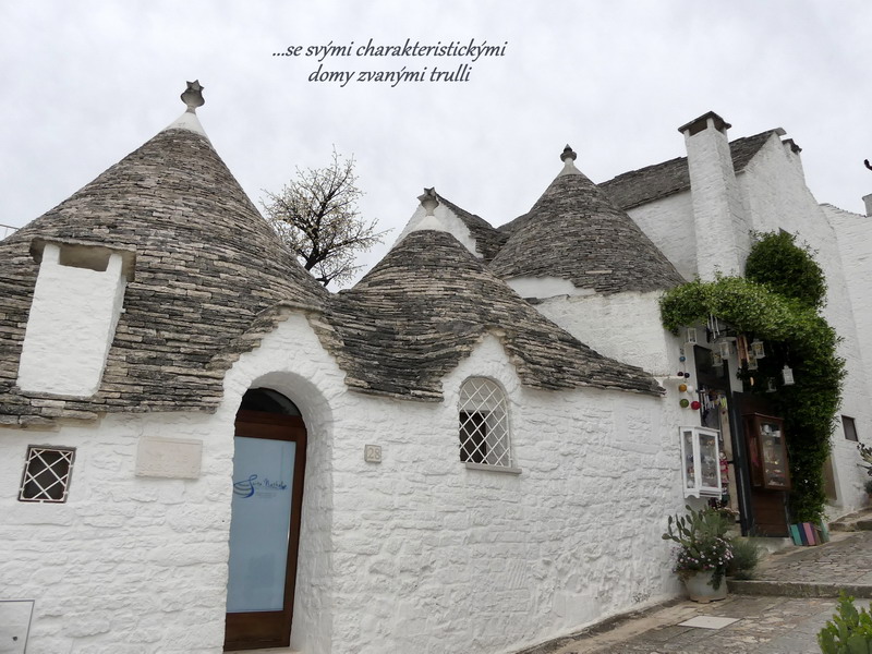 Asi nejznámějším symbolem, přitahujícím do Apulie turisty z celého světa, jsou malé domečky, tzv. trulli, zdobící zdejší krajinu. Jejich největší koncentrace je v městečku Alberobello, které ovšem díky masové turistice připomíná tak trochu náš Karlův most. Případným návštěvníkům bychom proto doporučili prohlídku města v brzkých ranních hodinách, ještě než se jeho hlavní ulice zaplní davem turistů. Samostatné trulli domečky je pak možné zahlédnout i jinde ve volné krajině, kde společně s místní přírodou vytvářejí krásnou a podmanivou scenérii.