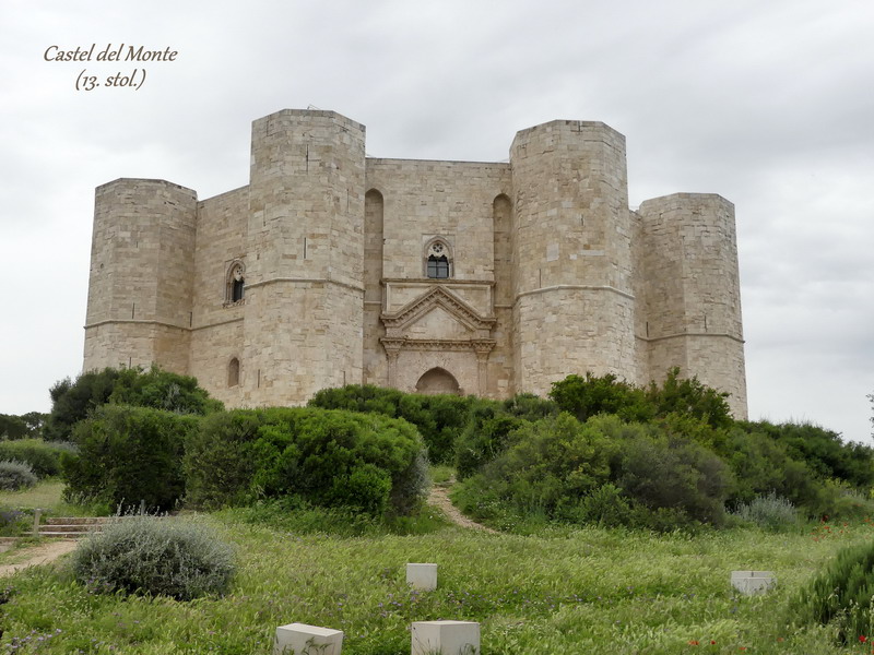 Několik kilometrů odsud leží jeden z nejznámějších hradů Apulie, slavný a záhadný Castel del Monte. Nechal ho postavit císař Fridrich II. Štaufský v polovině 13. století a celá stavba je architektonicky formována číslovkou osm. Sám císař byl mimořádnou osobností, ve své době se naprosto vymykal běžným konvencím a kolem jeho osoby i odkazu panuje dodnes řada záhad. I to je, a nejen pro milovníky tajemství, dobrý důvod, proč navštívit Castel del Monte, zařazený na seznam světového dědictví UNESCO.