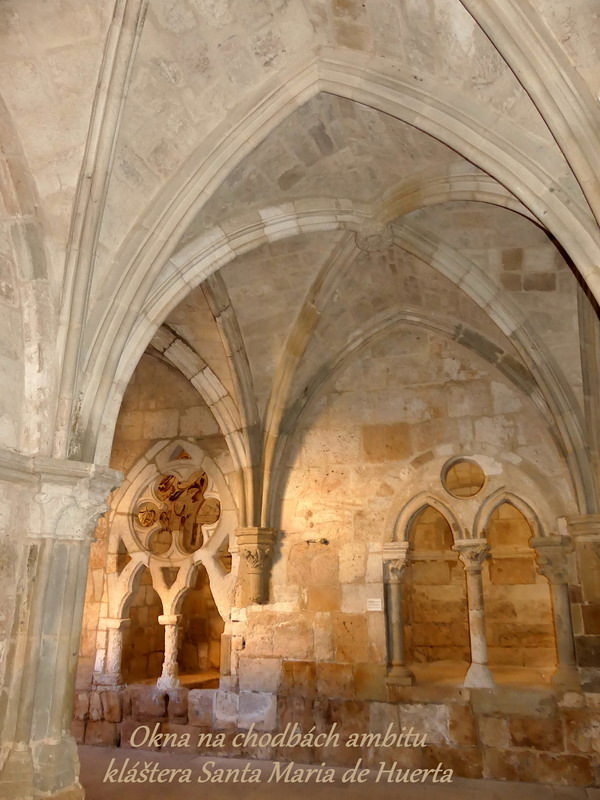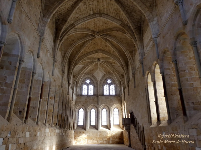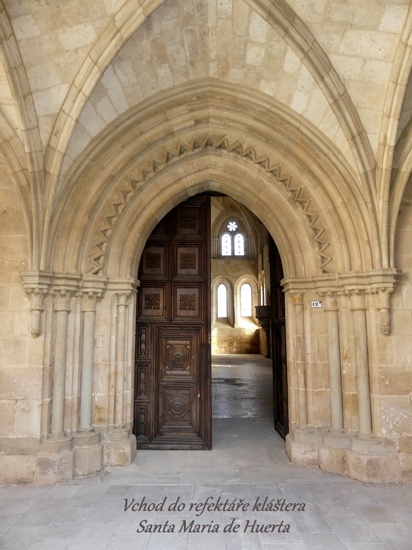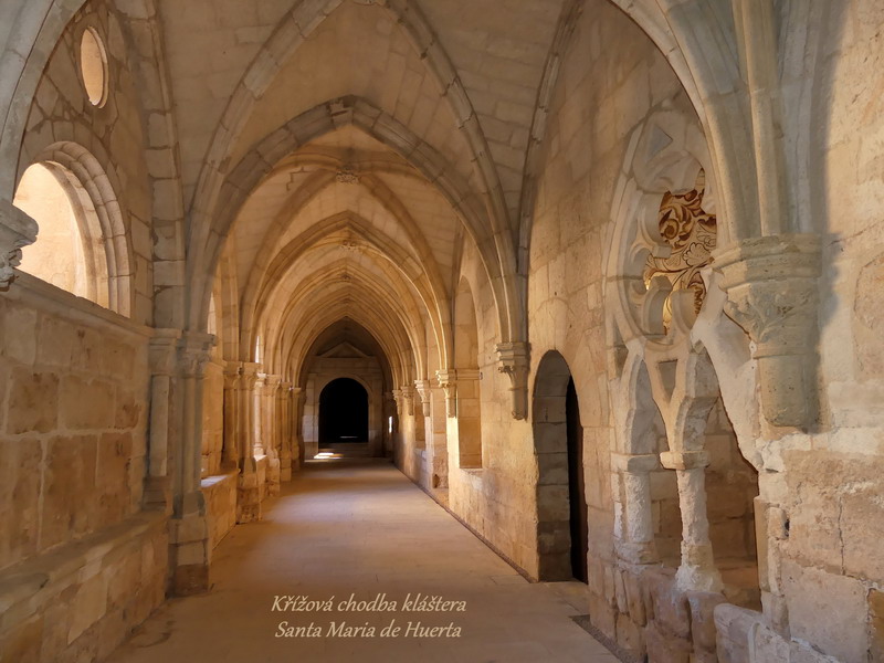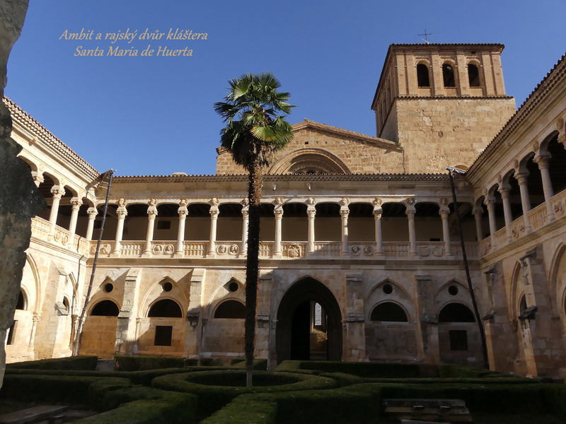Santa Maria de Huerta, který je stále obývaný mnichy a jejich péče je na celém objektu i znát. Tyto kláštery jsou nádherné svou kamenickou výzdobou, na tétoa i na mnoha dalších církevních stavbách v raném středověku odvedli tehdejší umělci kus mistrovské práce a čas byl k jejich dílu velmi milosrdný. Tak se nám zachovaly až do dnešních dnů poklady velké historické i umělecké hodnoty. U nás je doma je podobně zdobený například Anežský klášter na Františku, ale svým rozsahem a výzdobou je samozřejmě podstatně skromnější.