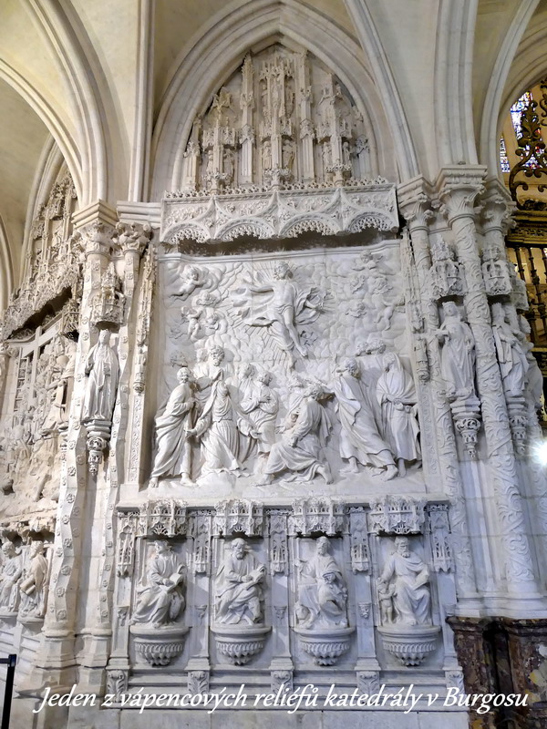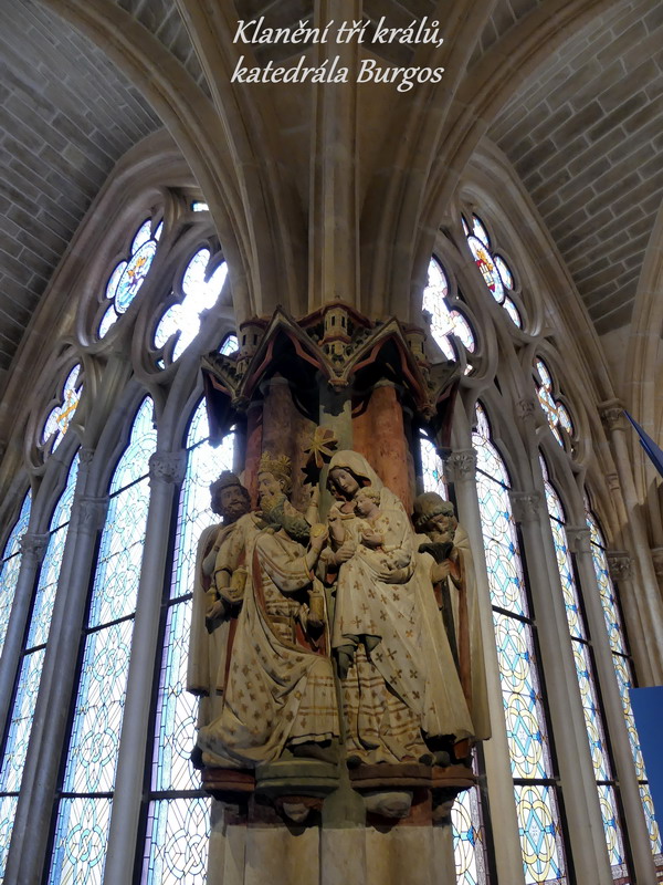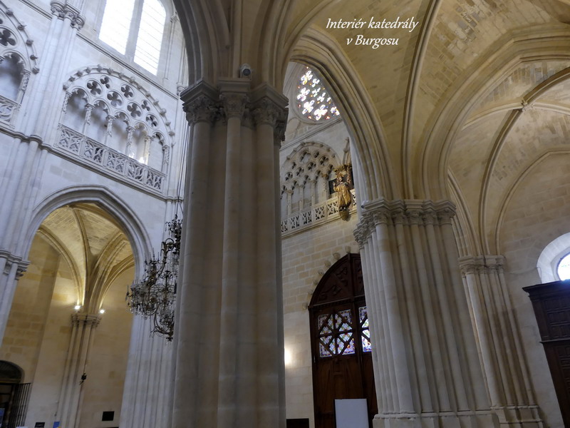 Catedral de Burgos, která je samozřejmě nádherná, ale na její prohlídku je třeba si vyčlenit více času, neboť součástí katedrály je i muzeum obrazů a soch s duchovní tematikou. Do katedrály se chodí Španělé poklonit památce svého národního hrdiny El Cida, který zde má svůj květinami trvale ověnčený hrob. Mně osobně přišla katedrála možná až příliš impozantní, ale že se jedná o architektonický skvost značné historické hodnoty, o tom jistě není pochyb. Vůbec celé město Burgos se nám jevilo jako takový ucelený obraz kdysi slavné španělské historie, který zahrnoval nejen krásné stavby, ale i tváře rytířských hrdinů a jejich královen, stejně jako soudobých světců a světic.