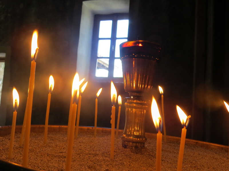 Athos, kam se ovšem běžný návštěvník tím méně pak žena hned tak nedostane. Však také první z klášterů založil mnich, původem z tohoto ostrova, i když dnes působí v Meteoře i ženský řád. Pro mě osobně bylo zajímavé, že se v nitru klášterů vznášela atmosféra podobná jeruzalemským chrámům, zvláště pak těm pravoslavným, ale stejně tak jsem si vzpomněla na Kapli svatého Kříže na Karlštejně, protože v přítomnosti mnoha světců, kteří zde stejně jako v našem svatostánku shlíží na přicházejícího poutníka, se duše člověka cítí na tomto místě také tak trochu více odhalena.