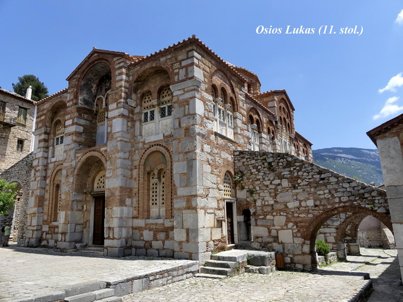 Ossios Lukas. Po dálnici nám to trvalo asi tři hodiny, ale cestovalo se nám dobře, protože jak už jsem psala jinde, na řecké A1 nebyl žádný velký provoz. Ani jsme se přitom moc nenudili, protože v této krajině máte kolem sebe krásná panoramata okolních horských masivů, z nichž vrcholky mnohých jsou i zde celoročně pokryty sněhem.