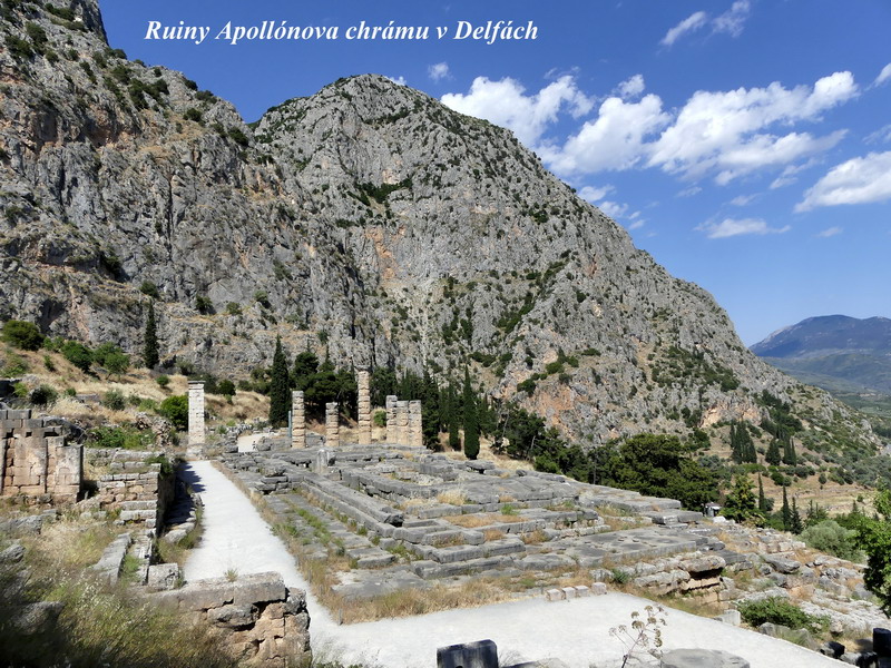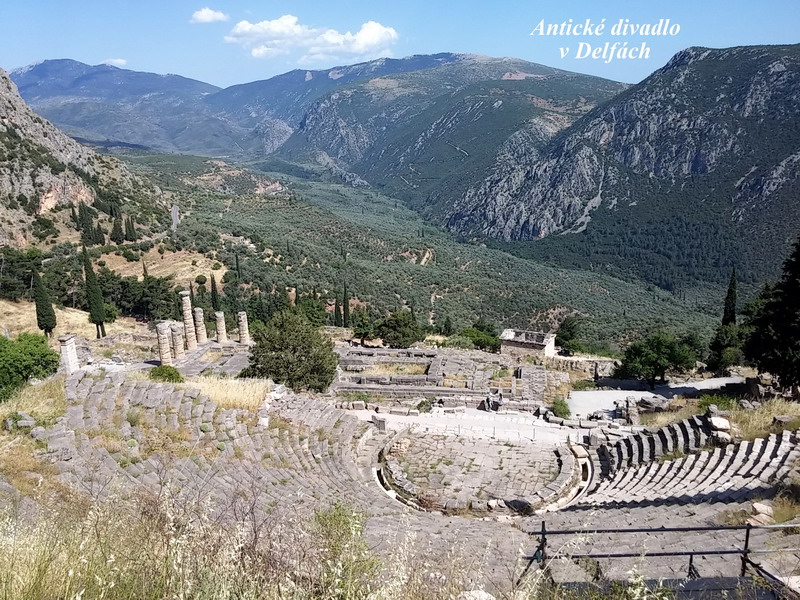 Delfy. Na cestě zpět jsme se tu také zastavili, ale v odpoledním slunečním žáru jsme ze všeho nejvíc hledali dosud stojící kamenné sloupy, abychom se alespoň na chvíli dostali do jejich stínu. Krajina je v těchto místech nádherná, ale samotné Delfy mě osobně moc nenadchly. Cítila jsem na tomto místě spíše materiální než duchovní rozměr, ale byl to možná jen můj osobní dojem. Ale na druhou stranu jsem byla ráda, že vidím konečně i něco ze starobylých řeckých památek, které jsou součástí naší evropské historie. Jen je mi asi bližší jiné období řeckých dějin, které obsahuje už prvky následující křesťanské epochy.