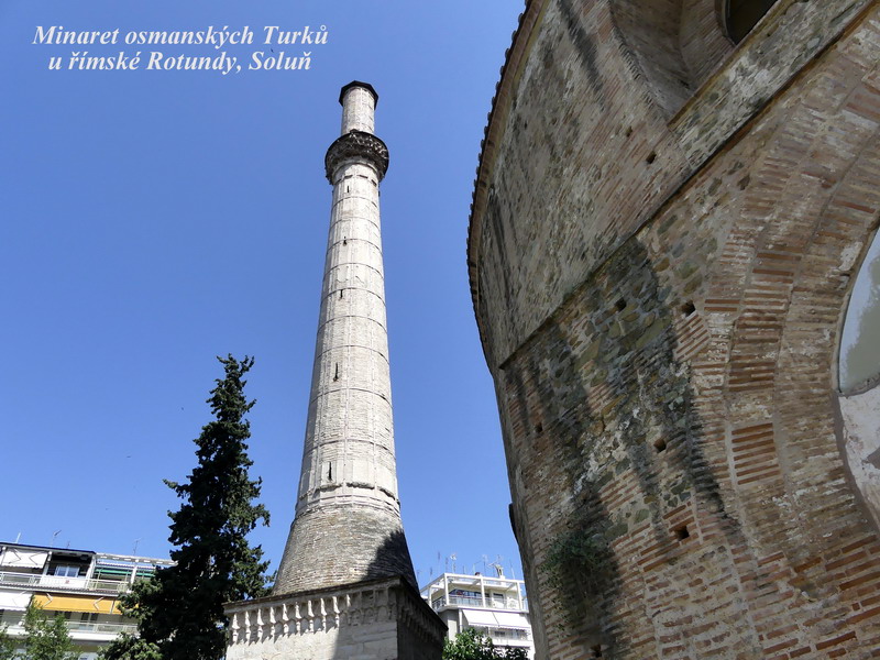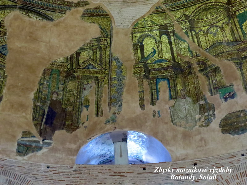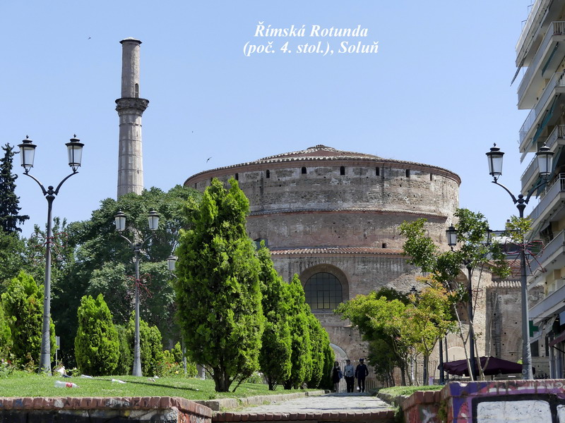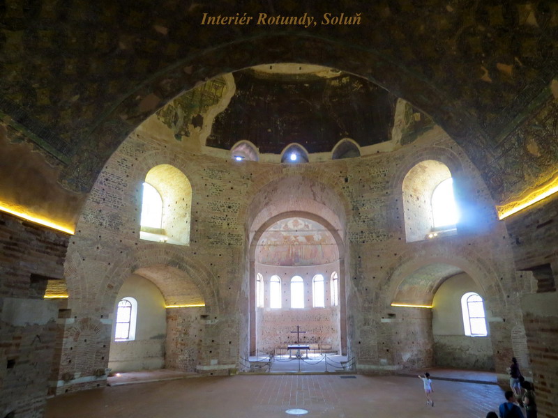 Rotunda, což je velkolepá stavba, připomínající tvarem římský Kapitol. Původně to mělo být mauzoleum jednoho z římských císařů, ten byl nakonec ale pohřben jinde a Rotunda byla následně přestavěna na křesťanskou baziliku. Ještě o několik století později to byla také mešita, dnes má chrám ale opět své původní zasvěcení. Je to monumentální stavba s několika málo dochovanými nástropními mozaikami a freskami, a člověk si jenom domýšlí, jak úžasná musela být svého času původní výzdoba tohoto chrámu. Turečtí muslimové ale mozaikovou výzdobu takřka zcela zničili, stavba samotná ale naštěstí přežila, dokonce i silná zemětřesení, která se v této oblasti občas vyskytují.