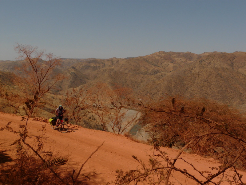 Povrch cesty se ještě přihoršil - úseků s hlubokou moučkou a ukrytými kameny přibylo a teplota se vyšplhala až na 47 °C. Stoupání bylo opravdu náročné. Jestli to bylo tím povrchem a nedostatkem pitné vody, vysokou teplotou nebo probdělou nocí, nevím, ale i zpětně to považuji za nejnáročnější úsek, který jsem nejen v Etiopii, ale i na světě kdy jel. (O to se ale na to pak lépe vzpomíná.) Když se teď se Zdeňkem potkáme a řekneme „Tekeze River“, tak se zasmějeme při vzpomínce, jak jsem tam celé odpoledne trpěli. On asi míň než já, protože na rozdíl ode mě už přejel několikrát na kole Himaláje, ale i tak věřím, že i pro něj to nebyl žádný med.