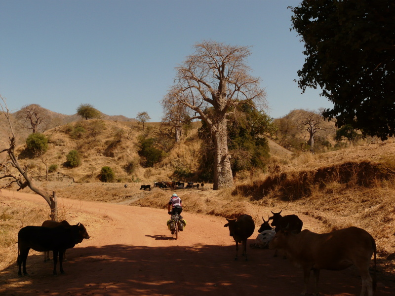 Kopec nahoru byl jen do výšky 1950 m n.m., ale hned následoval sjezd dolů. Takto to pokračovalo několikrát po sobě. Panoramata sice úžasná, ale jízda po hodně špatné kamenité cestě a pouze nahoru a dolů byla dost fyzicky náročná. V jednom z kopců se Zdeněk chytl náklaďáku, což já jsem na tomto terénu považoval skoro za sebevraždu, nicméně o chvíli mi zmizel v dáli a já zůstal ve vedru a stoupání sám. O pár zatáček dál stáli jako na potvoru v liduprázdné krajině u cesty čtyři kluci ve věku od 8 do 18 let. Hned jak jsem je z dálky uviděl, už jsem tušil, že budou problémy. Tito kluci na mě hned ostře vyjeli, abych jim dal peníze, tužku, triko nebo boty. Několik set metrů poklusávali vedle mě a jejich žádosti nabývaly na zuřivosti. Ten nejmenší mi dokonce začal za jízdy rozepínat zadní brašny. Tak jsem zastavil, abych jim vysvětlil, že nic nemám a že jim nic nedám, načež ten nejstarší si zlověstně sundal z ramene dlouhou dřevorubeckou sekeru. Zatím mi s ní sice nehrozil, ale to už jsem dostal pořádný strach. Naštěstí pro mě z opačného směru přijížděl turistický džíp, v němž seděli dva černoši a jeden americký důchodce. Sami zastavili a zeptali se mě, jestli něco nepotřebuji. Tak jsem jim vysvětlil, že z těch kluků mám už docela strach, načež jeden z černochů (průvodce a strážce v jedné osobě) vylezl ven a klukům pěkně vynadal. Kluci sice vyděšeni utekli, ale o kousek dál se zastavili a koukali, co bude dál. Američan si mě zatím fotil jako nějakou raritu, namačkal s objektivem namířeným na mě snad 20 fotek.