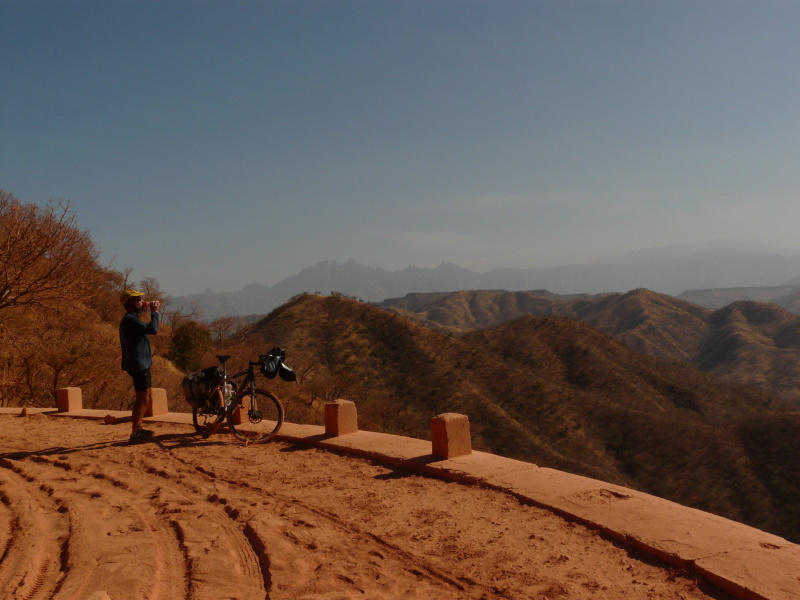 10 km jízdy dolů až do nadm. výšky 1140 m n.m. bylo velmi náročné, protože špatný povrch dovoloval jen velmi pomalou jízdu. Byla to technicko-akrobatická jízda v prachové moučce s kameny, až mě do rukou chytaly křeče z brzdění.