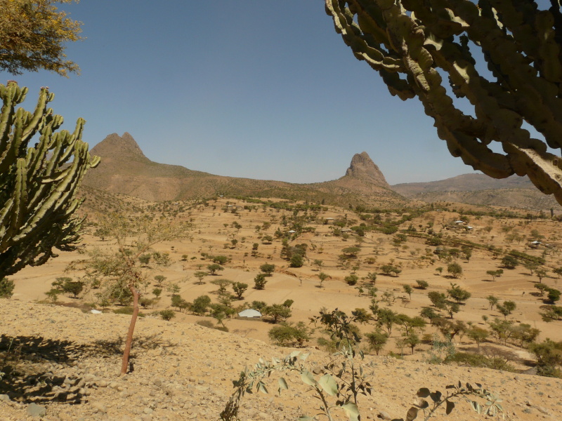 Prvních 20 km do města Shire bylo skoro po rovině, ale dost vyfukovalo. Jeli jsme ale naprosto výletně, takže to vůbec nevadilo. V Shire jsme si dali v kavárně napěněné mléko s trochou kávy a buchtou a jeli dál. Domluva však tady byla o nervy – u proskleného pultu s cukrářskými výrobky jsem nejprve ukázal na konkrétní buchtu a na druhé ruce dva prsty. Pak jsem u stolku, kde už někdo seděl a popíjel kávu, ukázal zblízka na šálek s kávou a zase zvedl dva prsty. Slečna za pultem kývla že ano a tak jsme si šli sednout ke stolku ven. Dlouhé minuty se nic nedělo, tak jsem šel naši objednávku připomenout. Slečna na mě koukala naprosto vyjeveně, jakoby mě viděla poprvé v životě. Objednávku jsem zopakoval, jen jsem se snažil svá gesta trochu více zaktualizovat. Slečna se zatvářila chápavě ve smyslu „ahá“ a tak jsem se opět vrátil k našemu stolku ven. Dalších deset minut se zase nic nedělo, to už jsme začínali být nervózní. Naštěstí přišel dovnitř mladý pár, který slečně moji objednávku přeložil z angličtiny do ahmerštiny, takže se vše zdálo v pořádku. Opravdu, během minuty nám slečna nesla na tácku objednané. Jen místo kávy bylo mléko. Skoro jsem rezignoval, ale ještě jednou jsem se pokusil objednávku reklamovat s tím, že jsme chtěli kávu, ne mléko. Šálky nám byly tedy odejmuty, do nich slečna přicvrkla z kávovaru trochu kávy a opět nám je vrátila. Znovu jsem se tedy – jako už po několikáté v posledních letech – ujistil, že bych se jako mim rozhodně neuživil.