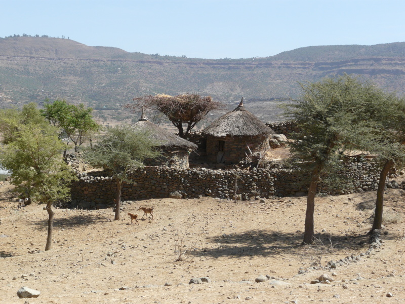 Silnice vedla po široké pláni s horami na obzoru a neustále mírně do kopce. Na jednom z prudších stoupání (v nadm. výšce 2740 m n.m.) byla zajímavá vesnice, jakoby ani do Etiopie nepatřila – dlouhá ulice byla lemovaná restauracemi a kavárničkami jako někde na jihu Evropy. V jedné z nich jsme si dali každý dva čaje (neskutečně dobré) a pepsikolu. Když jsme platili, bylo nám řečeno, že čaje jsou grátis. Od místních kluků jsme si před odjezdem koupili grepy, které byly tak kyselé, že nám z nich úplně slzely oči. Možná že byl dnes nějaký svátek, protože pár hodin předtím jsme dostali v maličké hospůdce kávu zdarma. Mimochodem, káva má v Etiopii naprosto nepřekonatelnou chuť a jak kávu normálně nepiji, tak tady jsem se po ní mohl otlouct. Káva se vždy před našimi zraky nejprve na pánvičce čerstvě upražila a až pak se z ní vyráběl ten lahodný nápoj. Podával se v malých koflíčkách a řekl bych, že za celý pobyt jsme za ni platili jen vyjímečně a pokud ano, tak 1 birr (1,60 Kč).