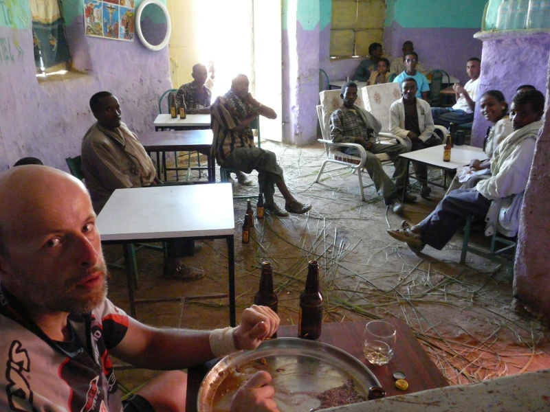 Učitel si to pak u nás pohoršil tím, že pro nás domlouval v hospodě jak snídani, tak její cenu a docela nás natáhl. Určitě to nemyslel zle – spíše si myslel, že kamarádovi hostinskému zařídí od dvou bohatých bělochů pěkný výdělek – ale v naších očích tímto klesl hodně hluboko. Kozí maso s houskami, čajem a kolou stálo pro oba celkem 85 Kč, což je na Etiopii více než dost. Nechali jsme to tak, protože když si člověk nedomluví cenu předem, po jídle je to už zbytečné.