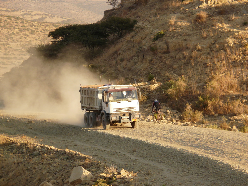 Syn majitelky, kde jsme byli ubytováni, nám včera vysvětloval cestu, ale asi jsme ho nepochopili správně. Namísto toho, abychom asi po 20 km přímo vjeli do 3. největšího etiopského města Mekele, jsme jej objeli zeširoka z levé strany a město jsme tak měli po pravé straně mírně pod sebou jako na dlani. Bylo zde několik továren, které čadily tak, že hned zrána se vznášel nízko nad celým Mekele hustý poklop smogu.