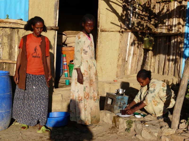 Ubytování bylo naštěstí za vraty, čímž jsme se zbavili hordy děcek a zvědavců utíkajících od krámku za námi. Jestli to byla „ubytovna“ nebo nás nechal někdo přespat u sebe netuším, ale malá komůrka byla součástí domku, kde se normálně žilo, takže spíše bych se přikláněl ke druhé variantě. Alespoň jsme měli možnost pozorovat dění v etiopské domácnosti zblízka. Na umytí byl pro nás oba jeden kýbl vody a to se ještě ošívali, že mají vody málo.