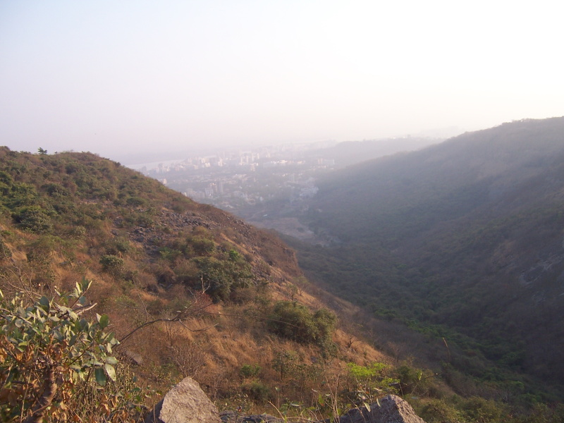 Jelikož mi nebyly indické ulice, trhy a obchody již tak vzácné jako předloni, poprosil jsem Neeraje, aby mě zavedl na nějaké hodně zajímavé místo. Předpokládal jsem nějaký chrám, ale Neeraj mě naložil do auta a nepředstavitelnou dopravní zácpou a chaosem mě vyvezl kousek za město na vysoký kopec, odkud byl veliký rozhled do okolí. Teoreticky by mohla být vidět téměř celá Nová Bombaj, prakticky to však díky hustému smogu moc na pokoukání nebylo. Navíc se válely podél silnice hromady odpadků, které nevábný dojem ještě umocňovaly.